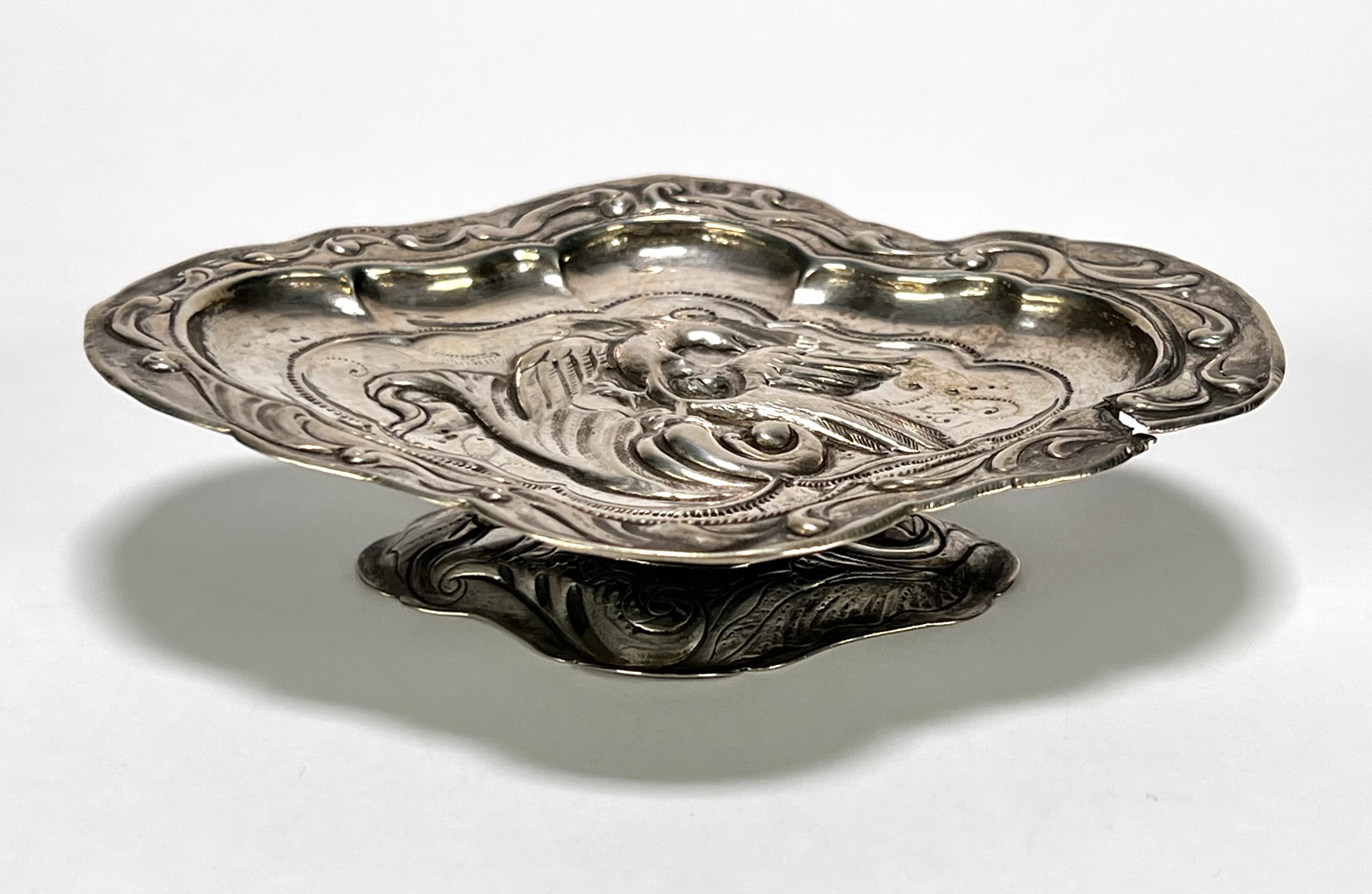 Zilveren schaaltje met religieus pelikaan motief, 19e eeuw
