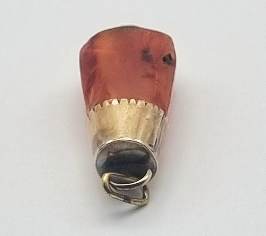 Gouden 14-karaats hanger met een oranjerode carneool, gemarkeerd met het Nederlandse eikenbladwaarborgmerk voor 585 goud. De antieke hanger uit de negentiende eeuw toont een grillig gevormde carneool cabochon in een geciseleerde gouden zetting met een karakteristieke kartelrand. Het sieraad is aan de onderzijde afgewerkt met een gouden bolletje. De hanger zelf beoordelen? Je bent welkom op onze kijkdagen op 10, 11 en 12 april! |
