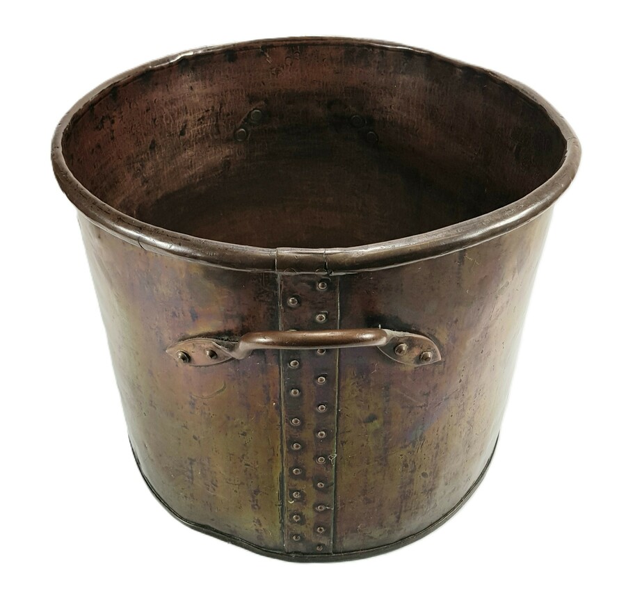 Aker in 19e-eeuwse gebruiksstijl, vervaardigd uit hand geslagen koper met geklonken nagels en handgrepen. De aker heeft een een cilindrische vorm met verdikte omgeslagen rand en verticale klinknaad. De aker dateert uit de 19e eeuw en heeft een West-Europese herkomst. Klaar om te bieden? Registreer je nu en doe mee aan de veiling! |