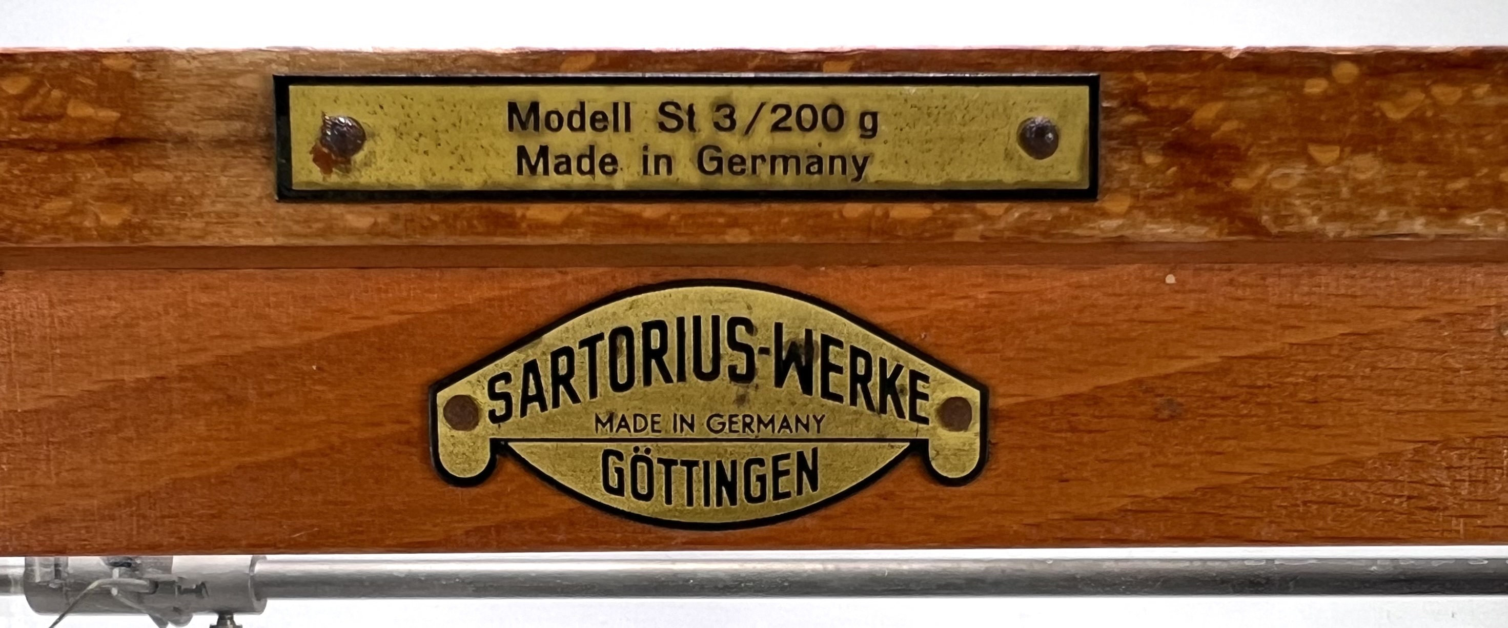 Duitse precisie balans van Sartorius-Werke te Göttingen, model St 3 / 200 g, vervaardigd ca. 1900–1930. De balans is geplaatst in een houten vitrine met glazen wanden en voorzien van een fijnmechanisch balanssysteem met twee metalen schaaltjes. Geleverd met originele gewichten, accessoires en houten opbergdoos. Klaar om te bieden? Registreer je nu en doe mee aan de veiling! |