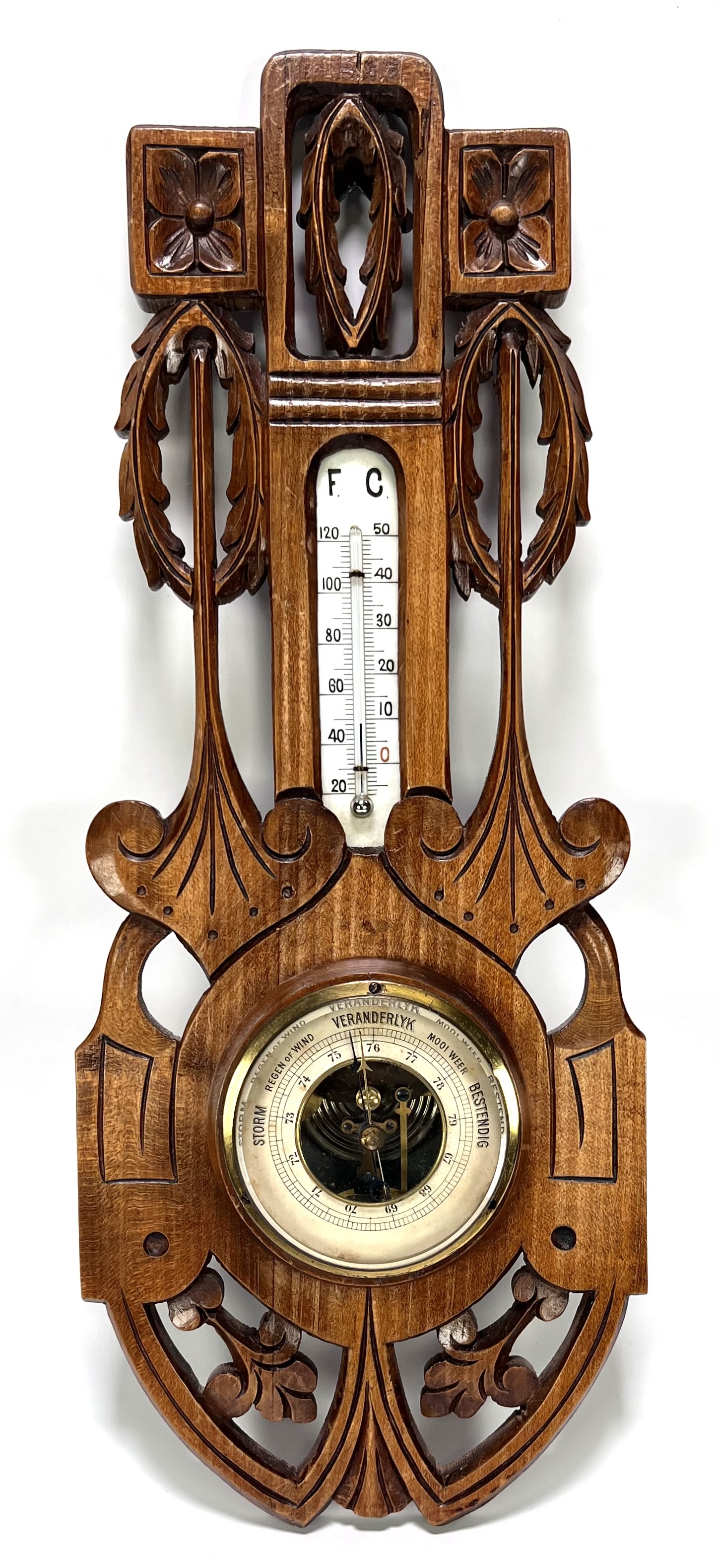 Art Nouveau eikenhouten barometer, begin 20e eeuw