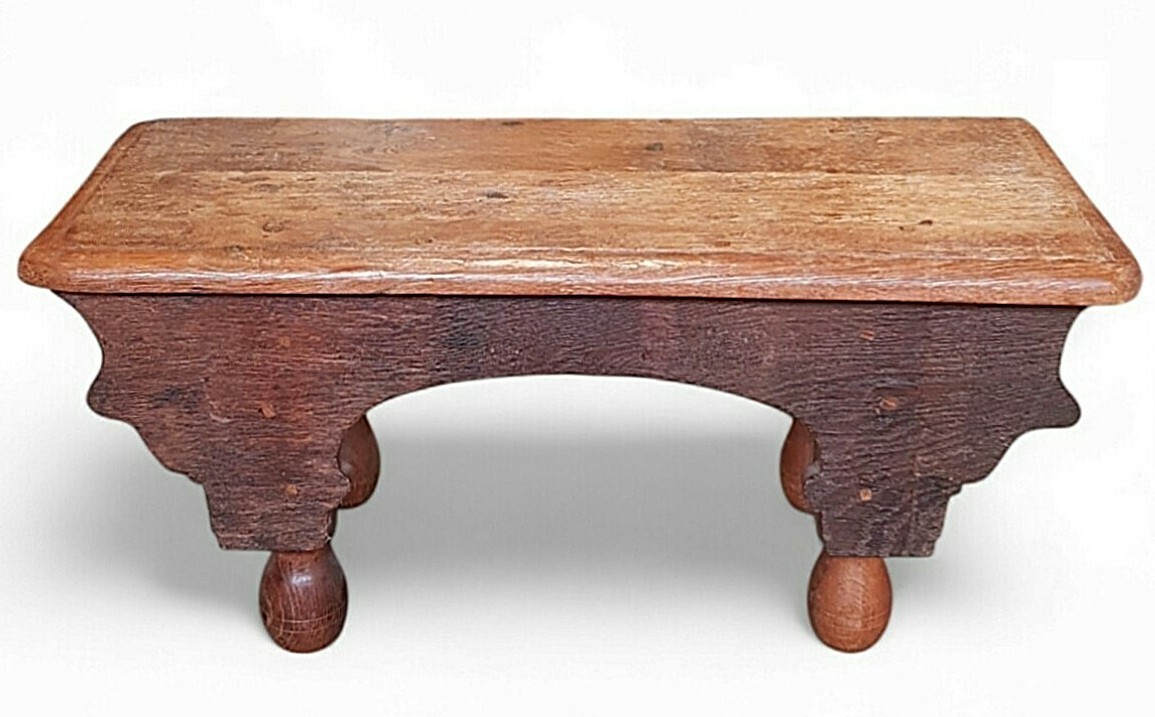 Bedstee bankje in rustieke volkskunststijl, vervaardigd uit eikenhout met een ambachtelijke techniek. Dit bankje is voorzien van vier gedraaide bolpoten en een gewelfde regel onder het zittingblad. De constructie toont zichtbare verbindingen en een patina door intensief gebruik. Het meubel dateert uit de negentiende eeuw en heeft een Nederlandse herkomst. Geïnteresseerd? Bezoek onze kijkdagen op 10, 11 en 12 april van 11:00 tot 17:00 uur! |