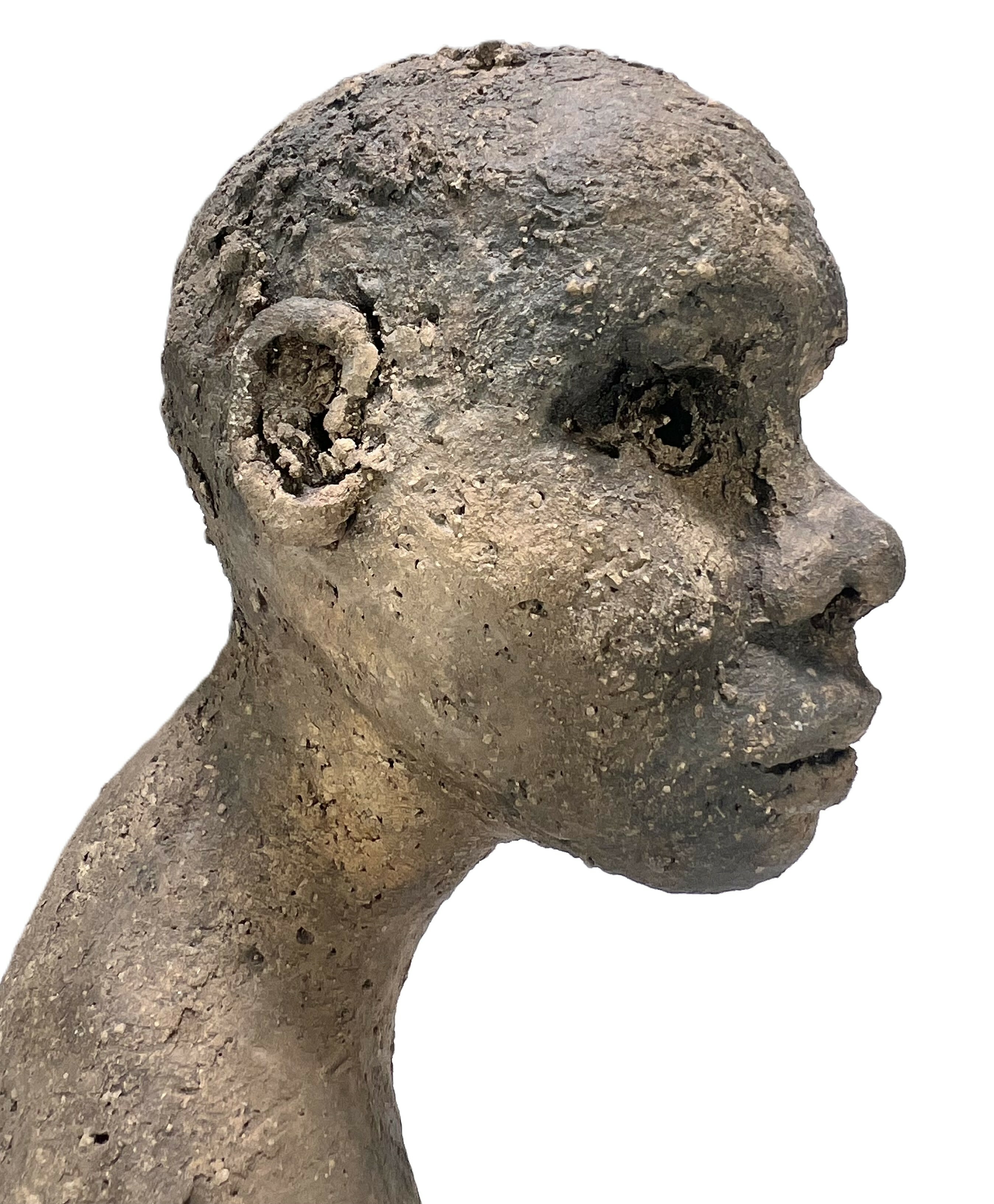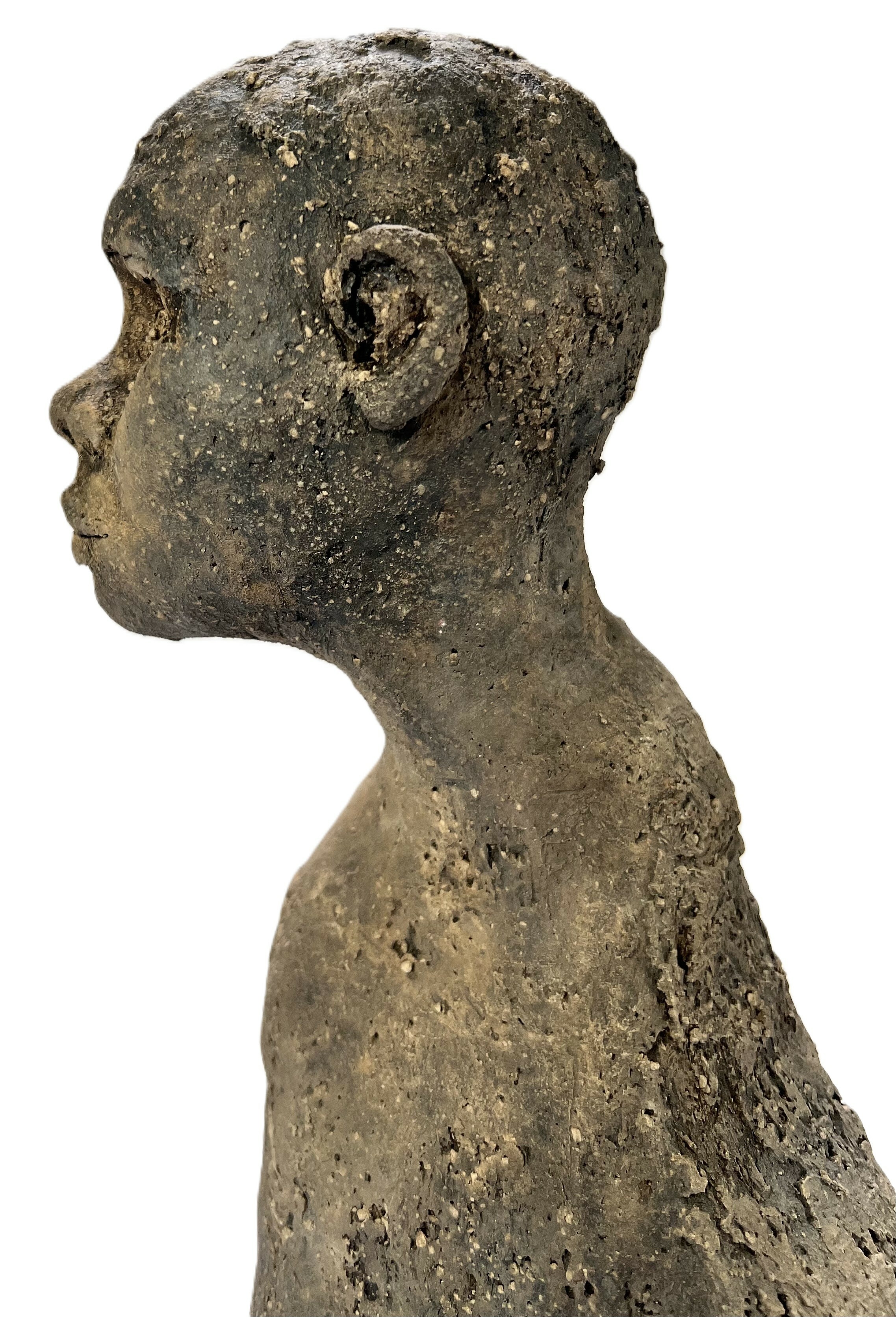 Keramisch beeld door Marianne van den Berg in brutalistische stijl, getiteld "I Wonder". Het handgevormde object uit keramiek toont een buste met ruwe textuur en karakteristieke voorovergebogen houding. De expressieve gelaatstrekken zijn uitgevoerd in aardse tonen met een korrelig oppervlak. Dit beeld dateert uit 2021 en heeft een Nederlandse herkomst, inclusief echtheidscertificaat. Wil je direct deelnemen? Plaats vanaf 3 april alvast een schriftelijk bod via onze website! |