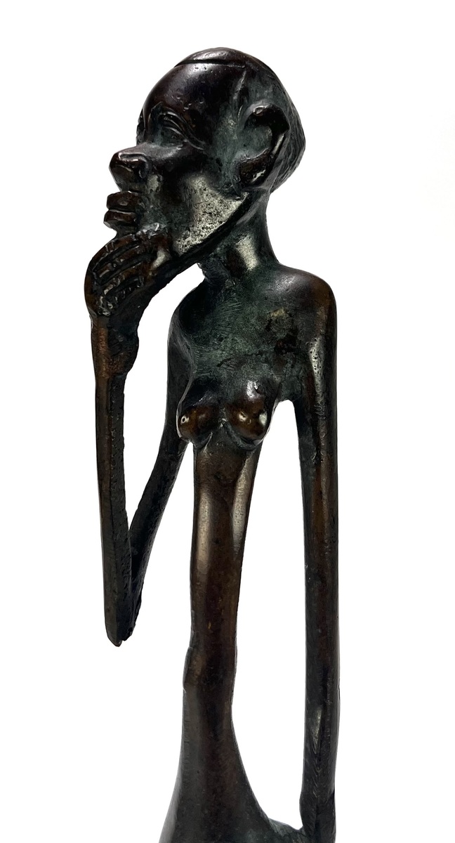West-Afrikaans beeld, laat 20e eeuw, gegoten in brons met donker gepolijste patina en oxidatie. De staande vrouwelijke figuur is gestileerd met langgerekte ledematen. Klaar om te bieden? Registreer je nu en doe mee aan de veiling! |
