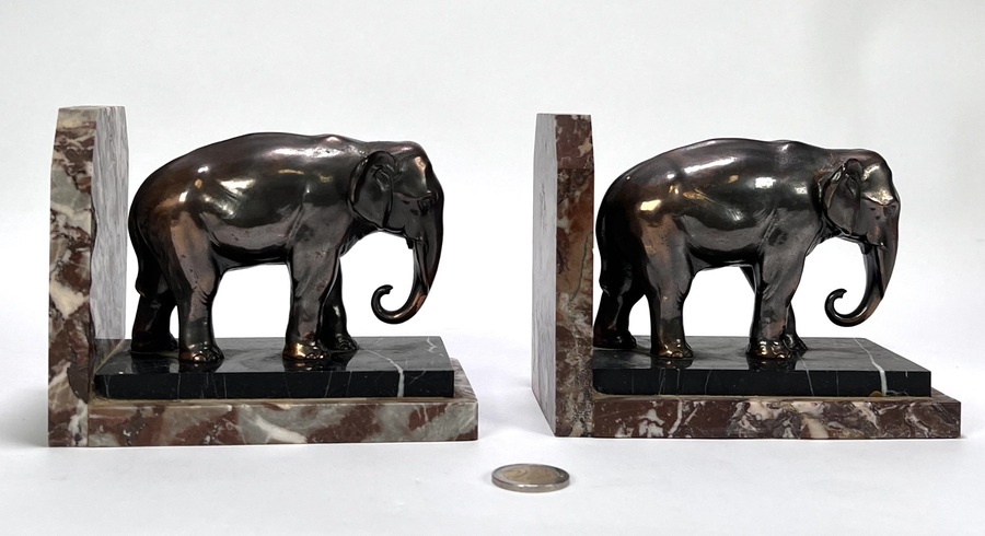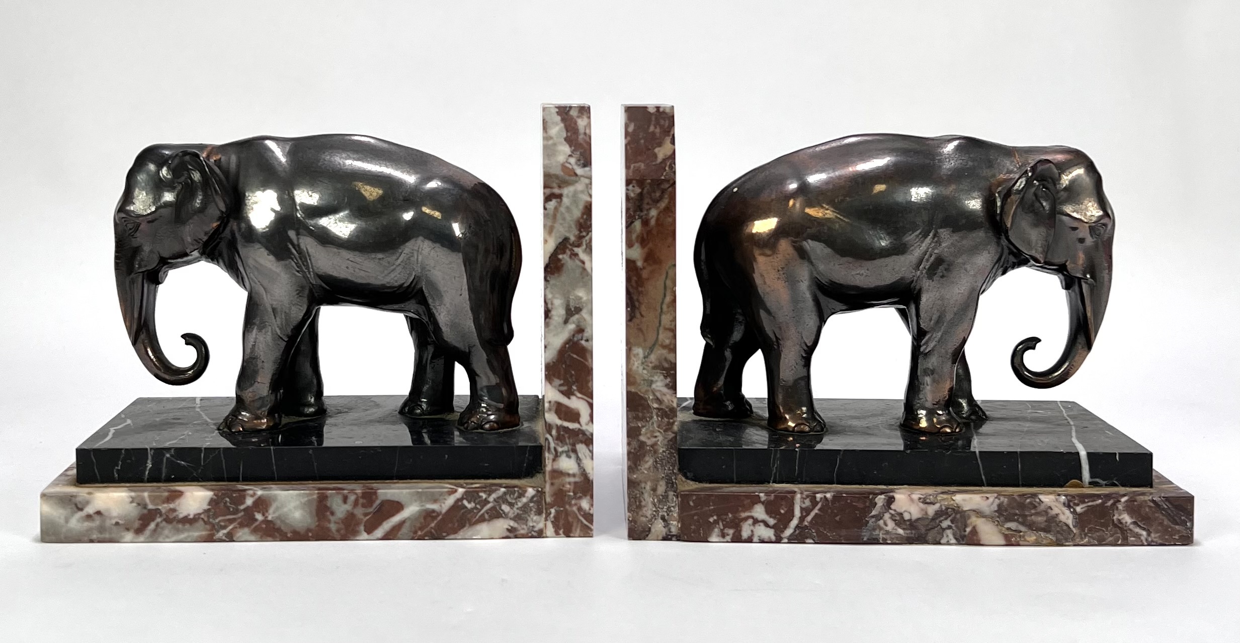 Art Deco boekensteun - olifanten, Frankrijk, eerste helft 20e eeuw