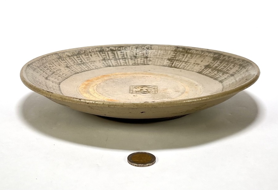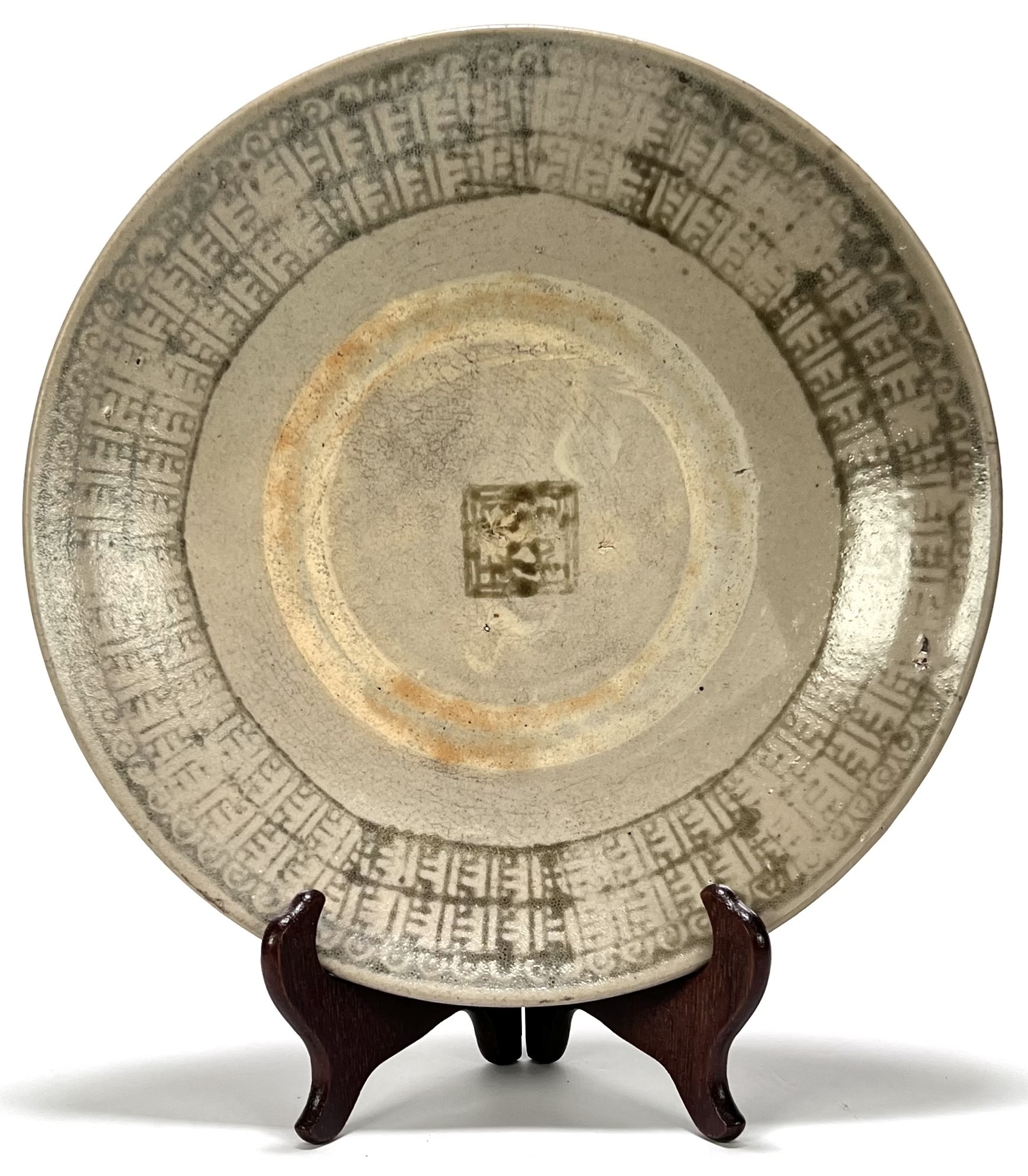 Keramiek bord - Buncheong, Joseon Naeseom-merk, Korea, 15e eeuw