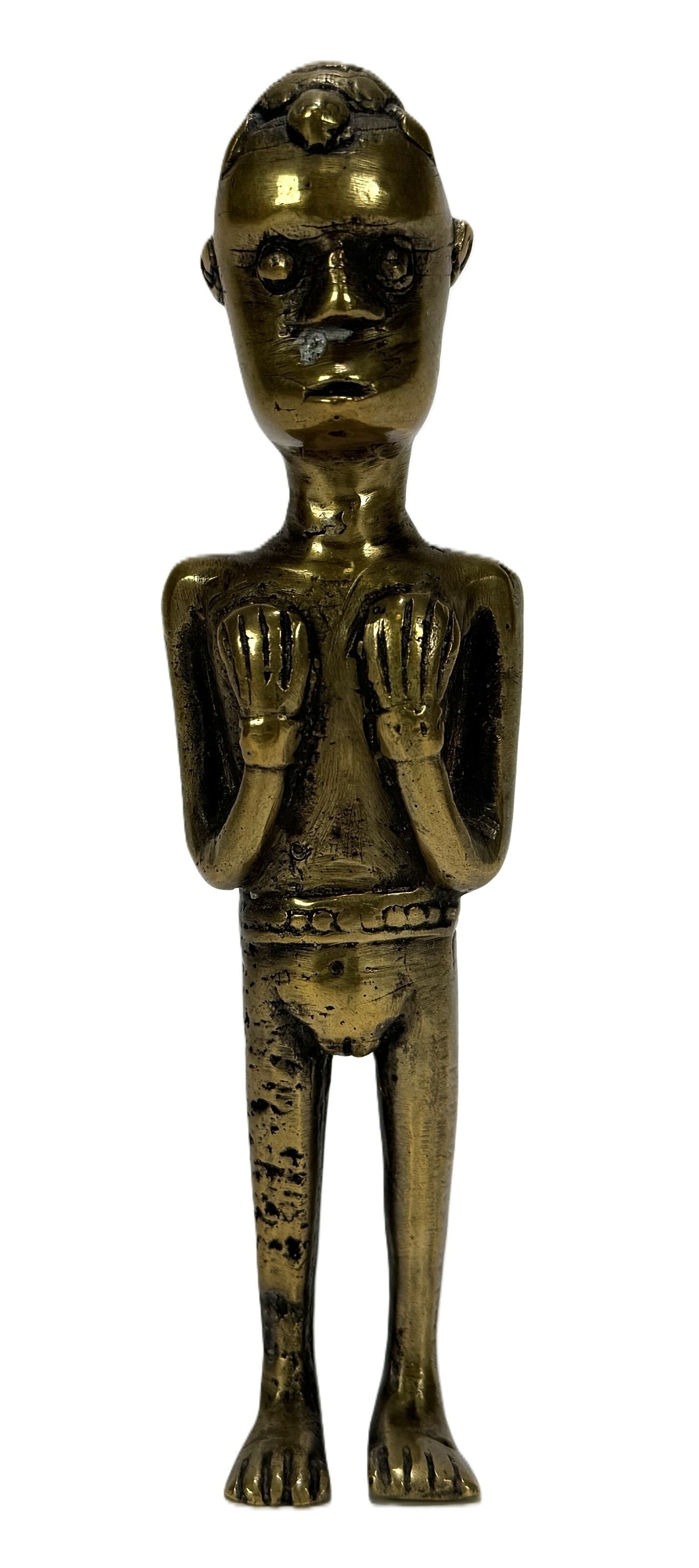 Messing beeldje, West-Afrika - staande figuur, eind 20e eeuw