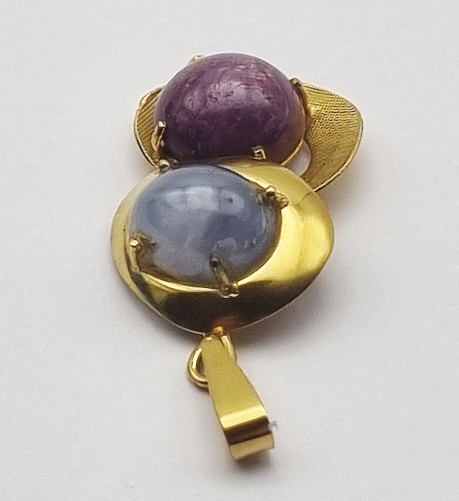 Gouden hanger met stersaffier en sterrobijn, tweede helft 20e eeuw