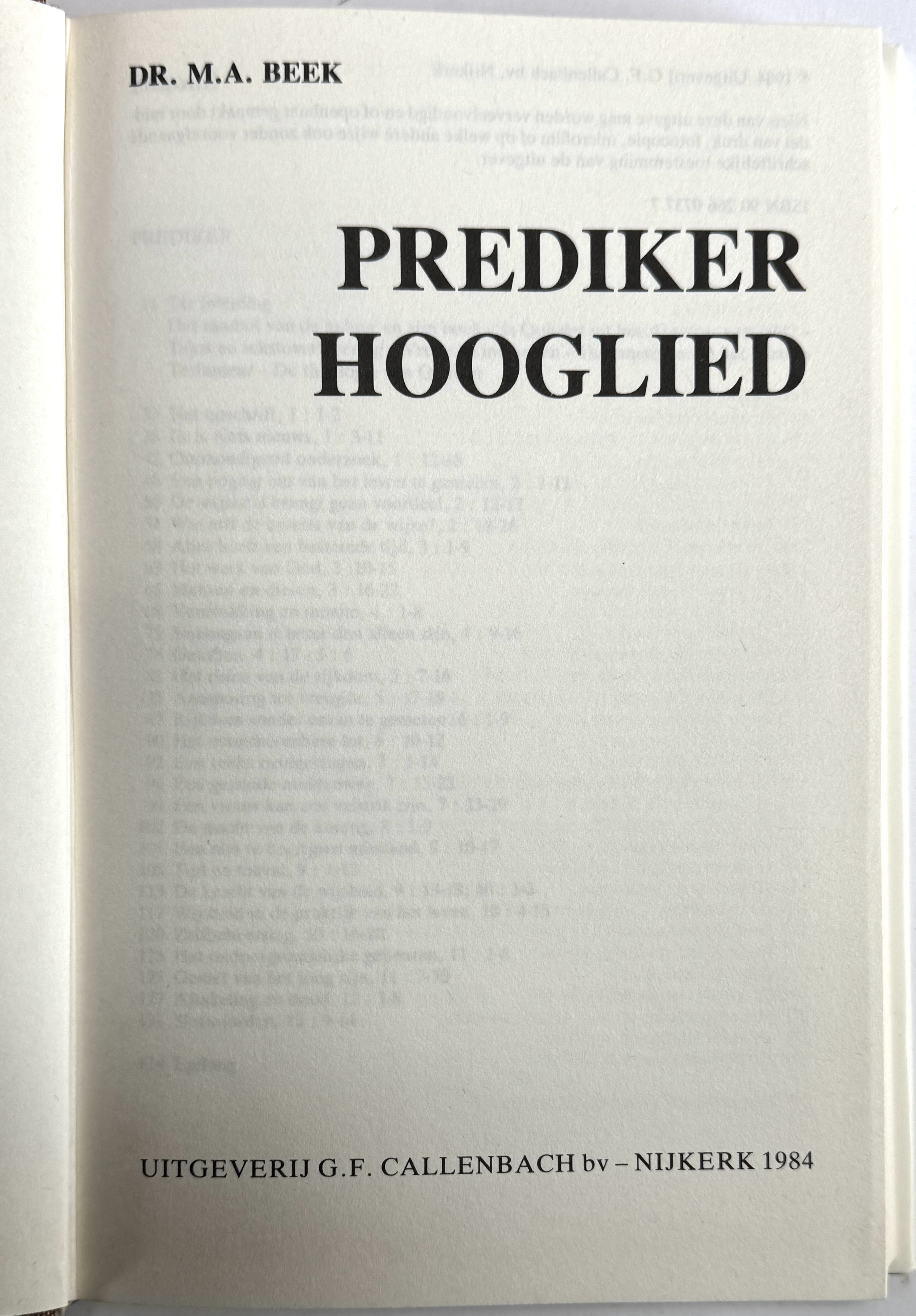 Boeken uit de reeks 'De Prediking van het Oude Testament' tonen een uitgebreid theologisch overzicht in academische stijl, uitgevoerd in gebonden banden met stofomslag. De verzameling omvat commentaren van diverse vooraanstaande auteurs en is kenmerkend voor de Nederlandse exegese-traditie. De reeks dateert uit de tweede helft van de 20e eeuw en heeft een Nederlandse herkomst. Geïnteresseerd? Bezoek onze kijkdagen op 10, 11 en 12 april van 11:00 tot 17:00 uur! |