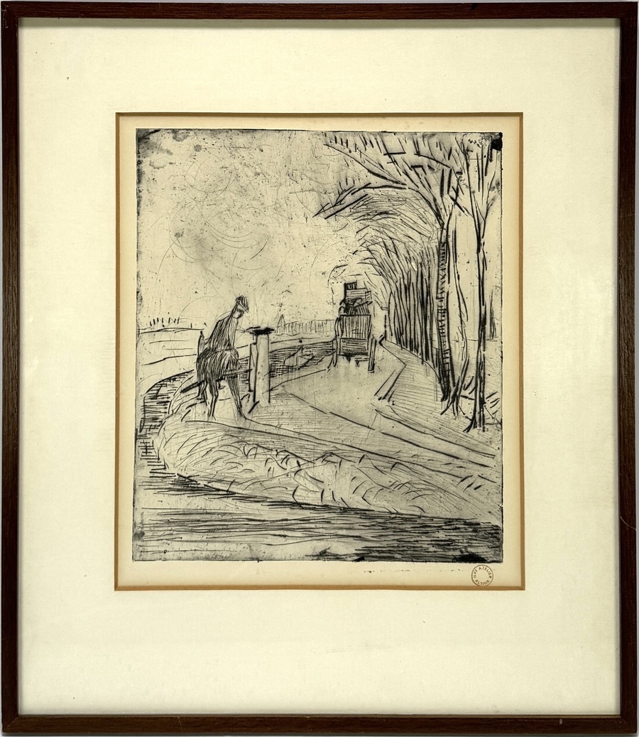 Ets door Jan Altink (1885–1977) toont een landschap met een rijtuig op een bosweg, uitgevoerd in ets op papier. Rechtsonder voorzien van het authentieke atelierstempel. Het werk dateert uit de eerste helft van de twintigste eeuw en heeft een Noord-Nederlandse herkomst. Wil je direct deelnemen? Plaats vanaf 3 april alvast een schriftelijk bod via onze website! |