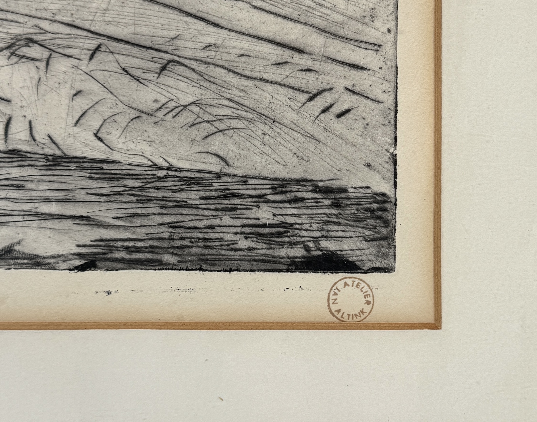 Ets, Jan Altink - landschap met rijtuig, eerste helft 20e eeuw