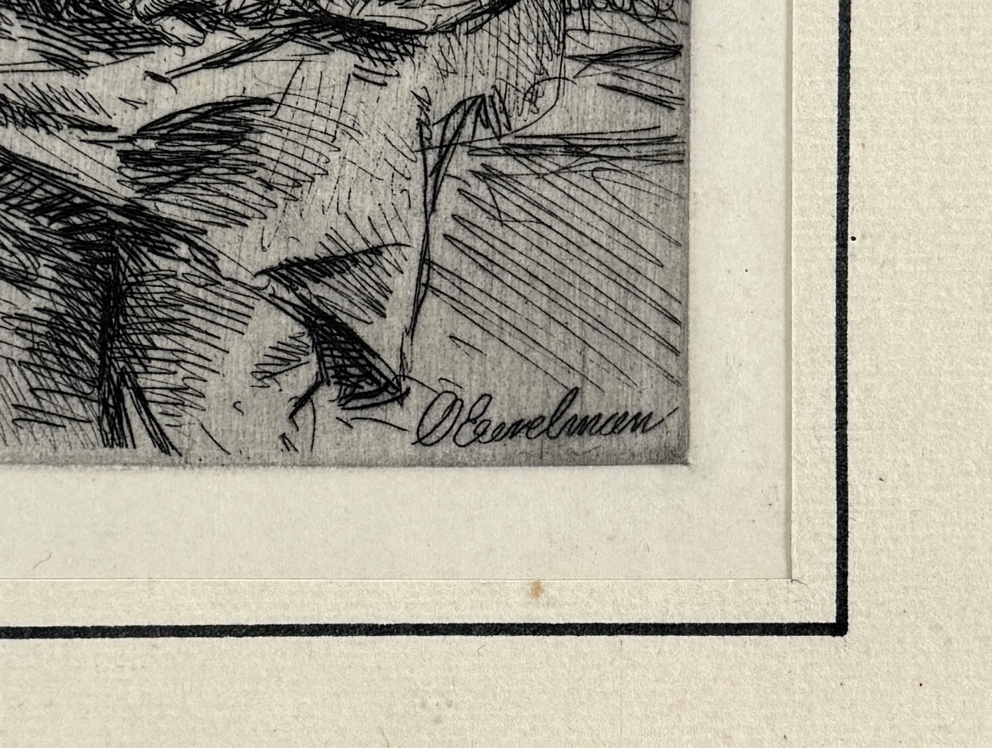 Ets op papier door Otto Eerelman (1839–1926) tonende een zittende man met hoed en een stokje in zijn hand. De voorstelling is in realistische stijl en draagt de titel “Studie van een boer”. Rechtsonder in de plaat gesigneerd, daterend omstreeks 1900. Registreer nu en bied eenvoudig online mee op deze ets! |