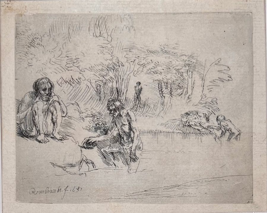 Ets, Rembrandt van Rijn - "De Baders", 18e/19e eeuw