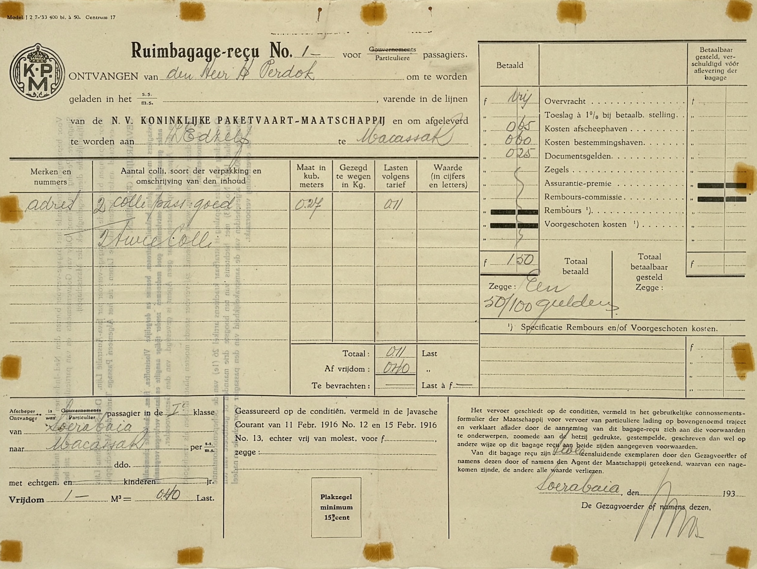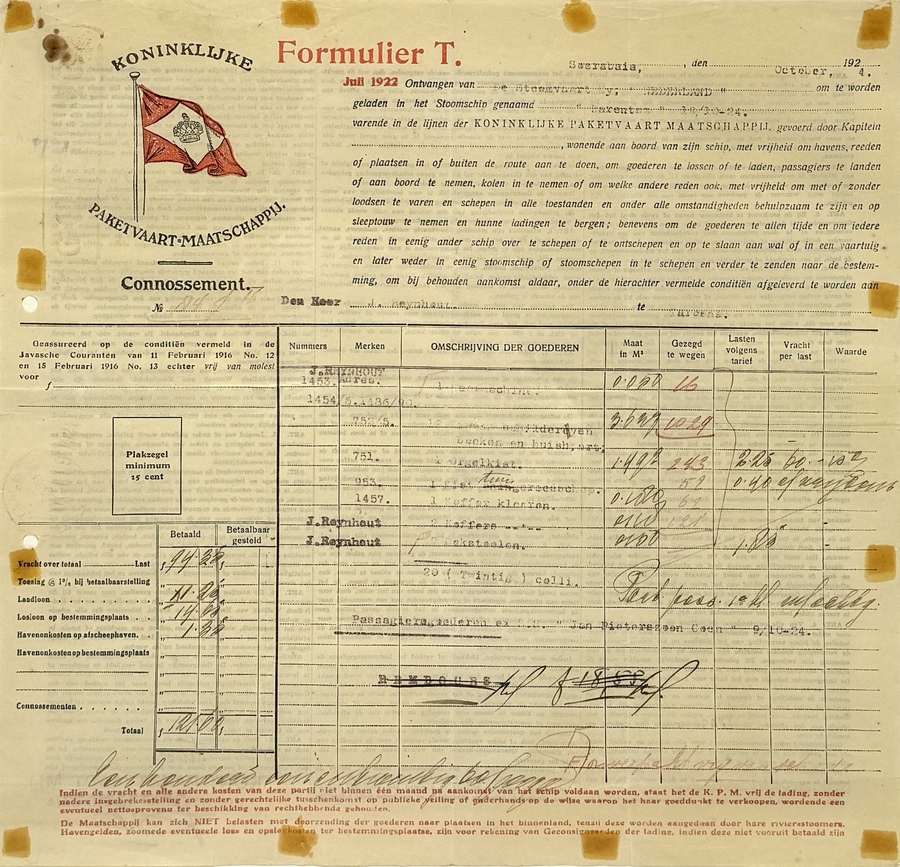 Maritieme ephemera - KPM documenten, Nederlands-Indië, 1922-1924