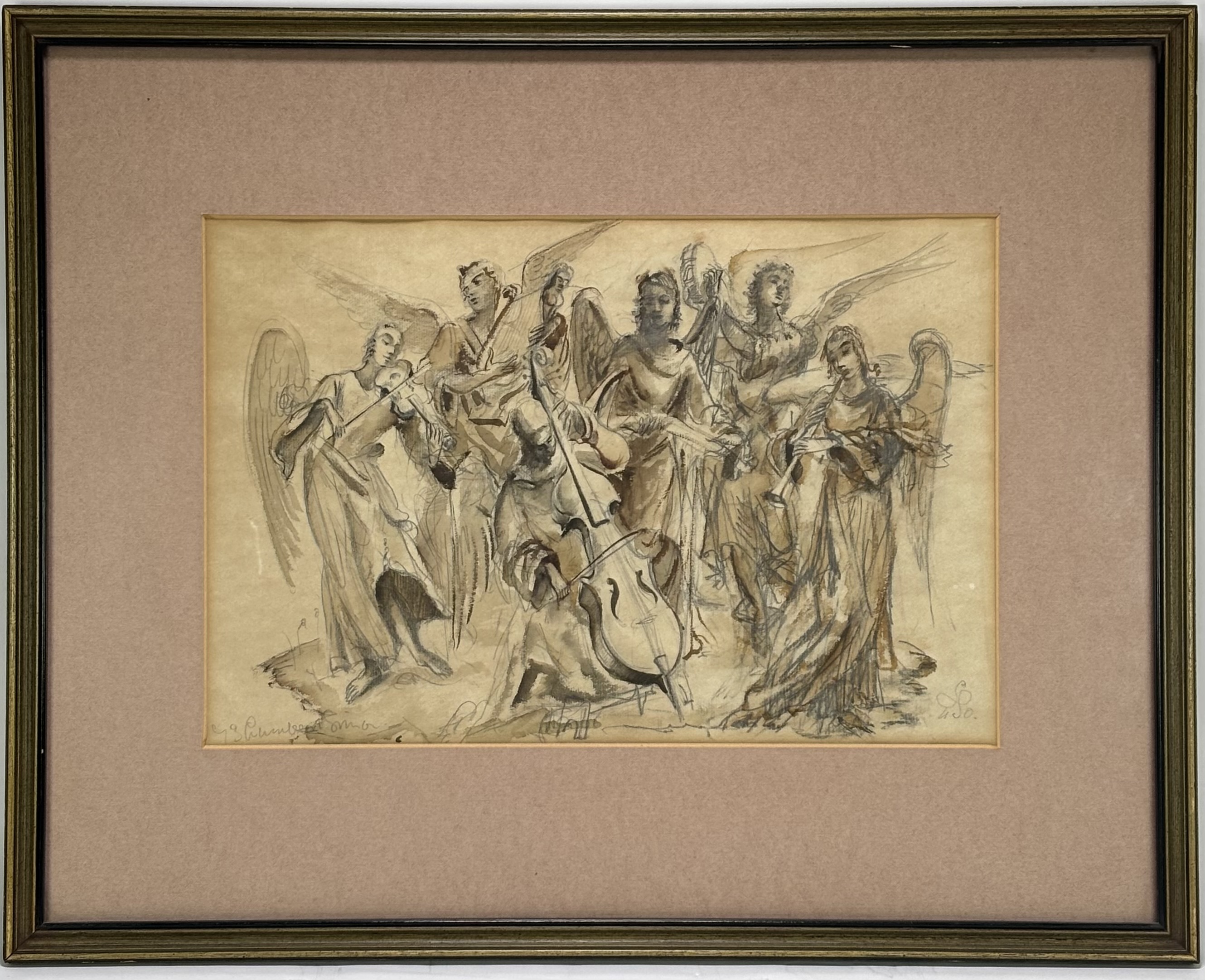 Tekening - musicerende engelen, eerste helft 20e eeuw