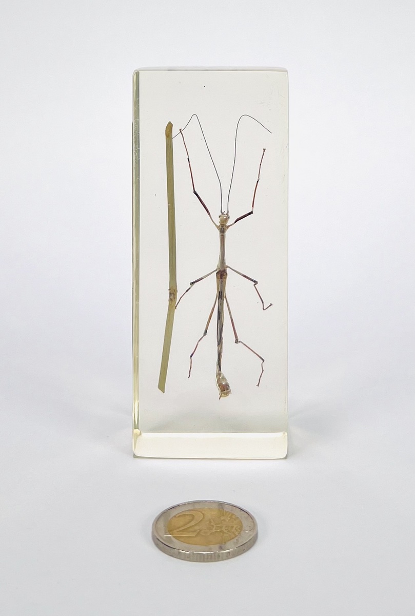 Insecten in natuurhistorische presentatievorm, samengesteld als educatieve collectie, uit de tweede helft van de 20e eeuw. De verzameling bestaat uit meerdere insecten individueel ingesloten in transparante kunstharsblokken, gepresenteerd in een kunststof cassette. De set is uitgevoerd volgens museale en didactische conventies en heeft een Europese herkomst. Kom langs tijdens de kijkdagen en ontdek deze insecten zelf! |