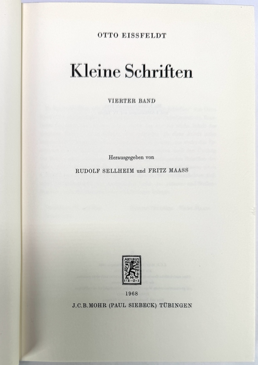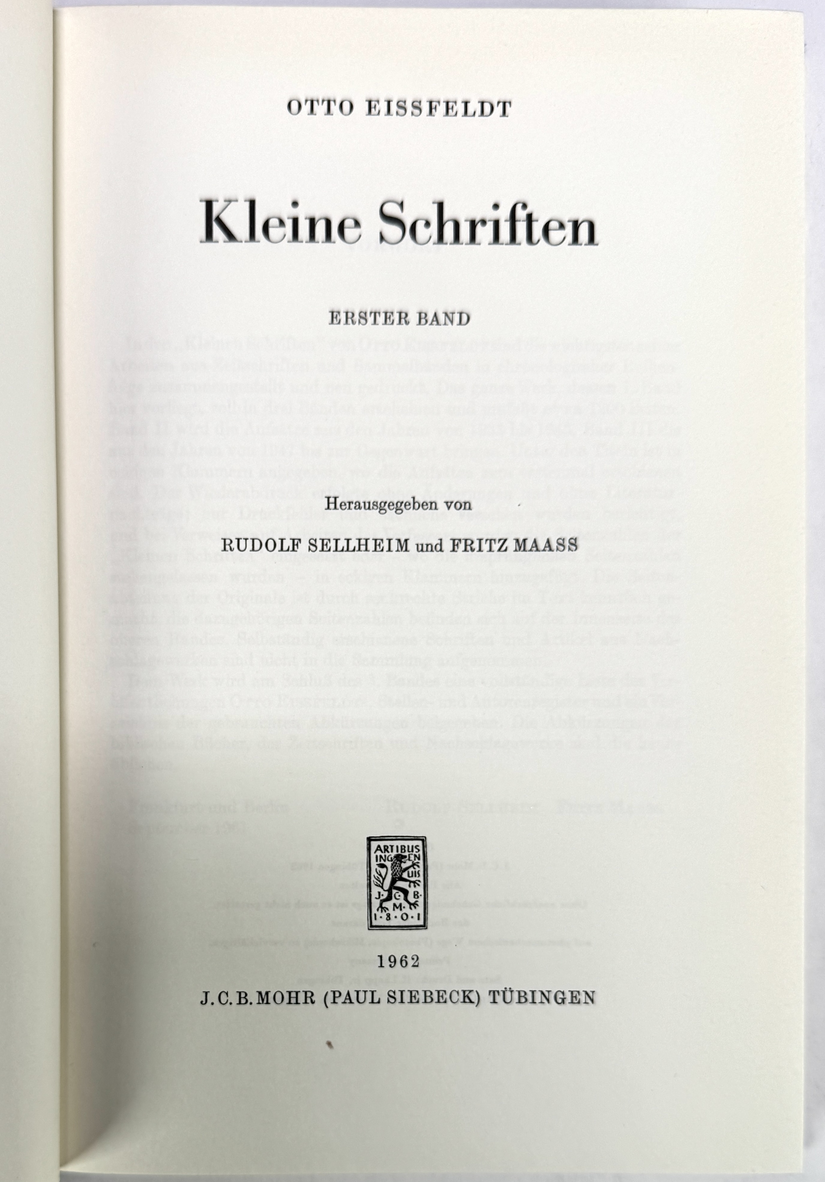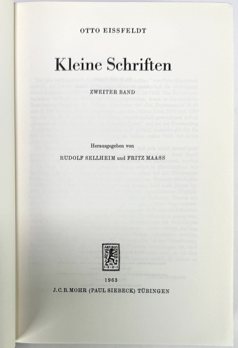 Boeken, Albrecht Alt en Otto Eisfeldt – Kleine Schriften, ca. 1960