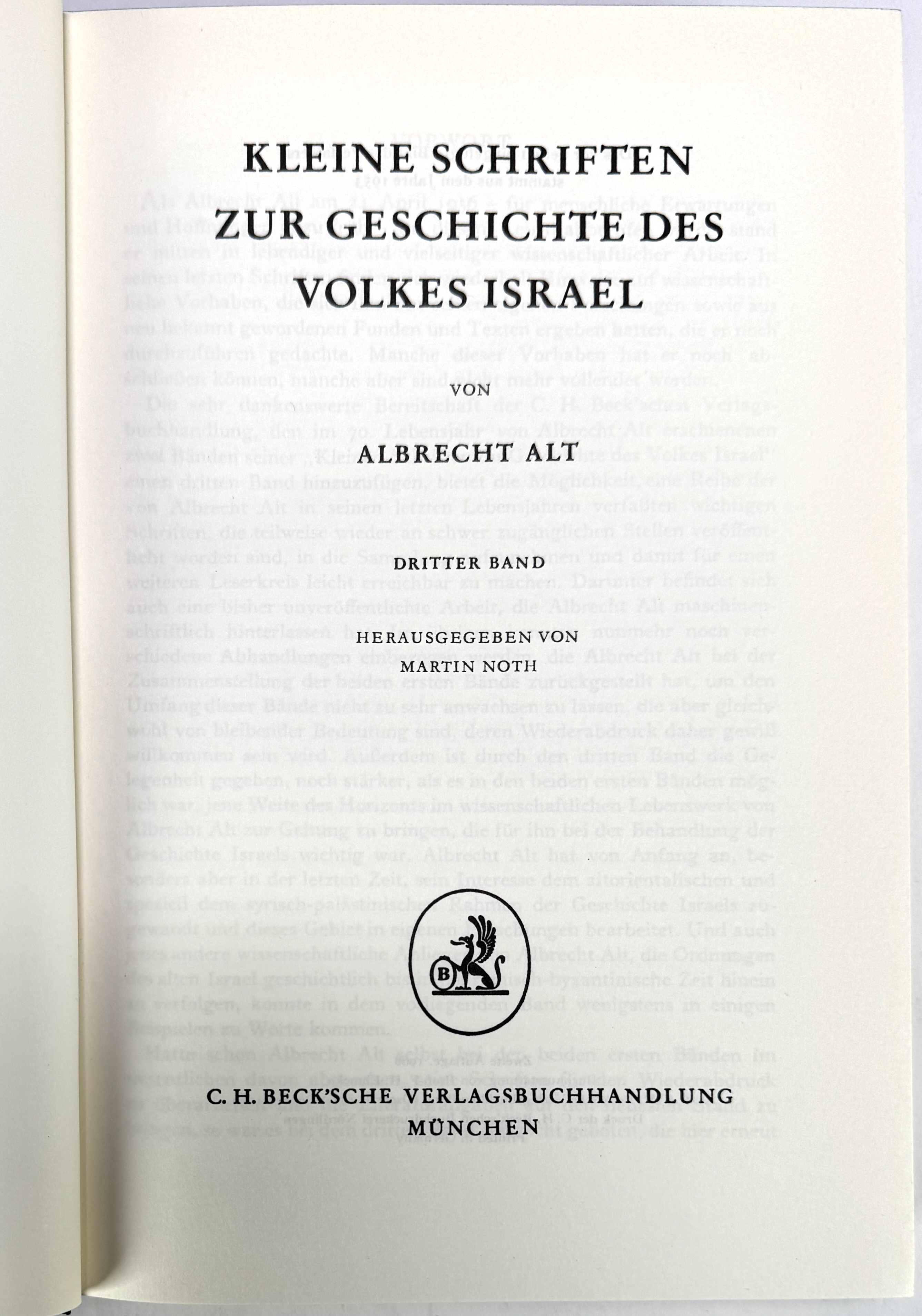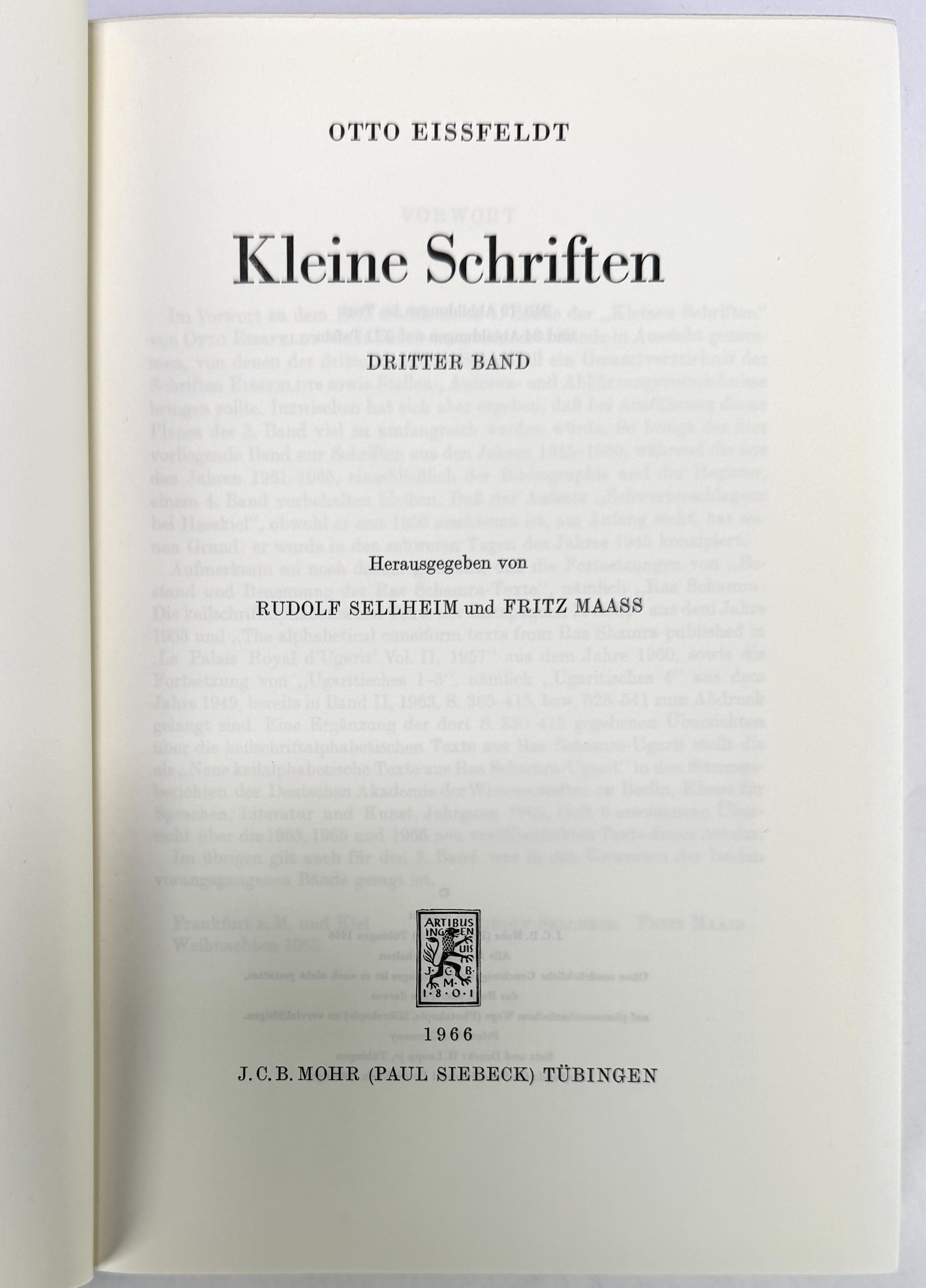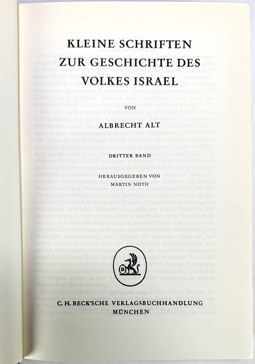 Boeken, Albrecht Alt en Otto Eisfeldt – Kleine Schriften, ca. 1960