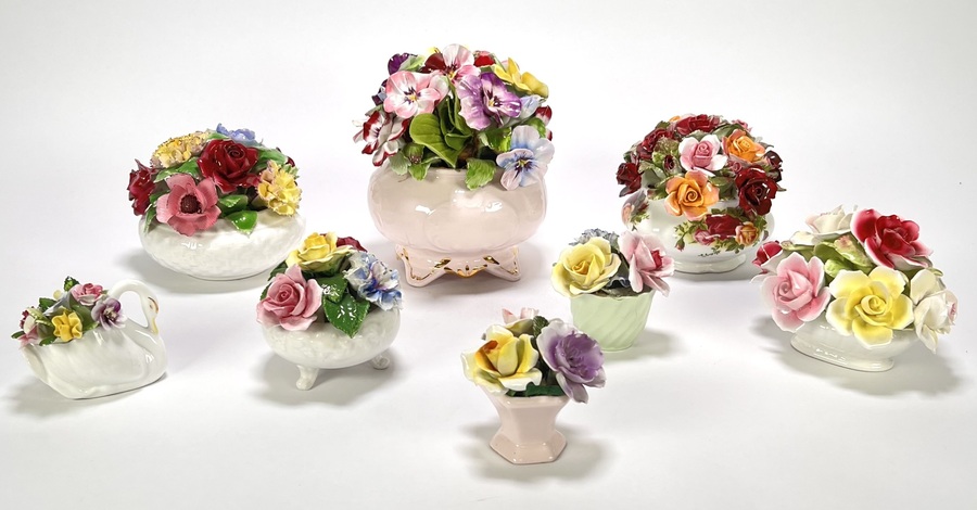Porseleinen bloemstukjes, Radnor & Royal Adderley - Engeland, midden 20e eeuw
