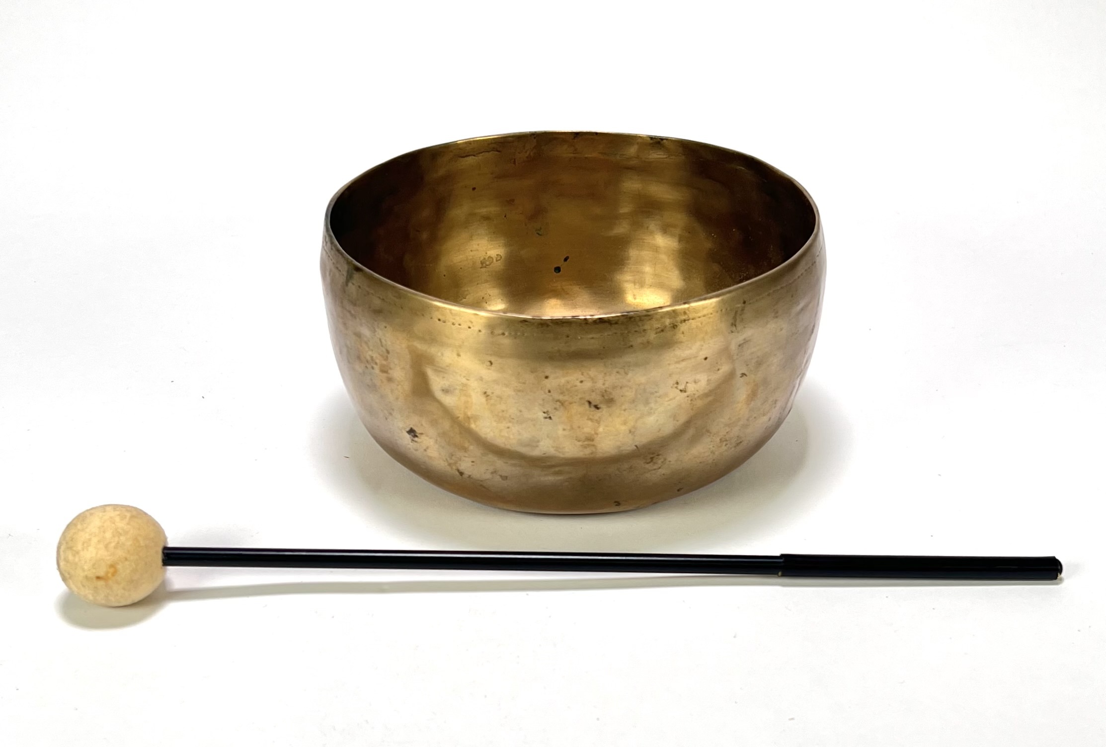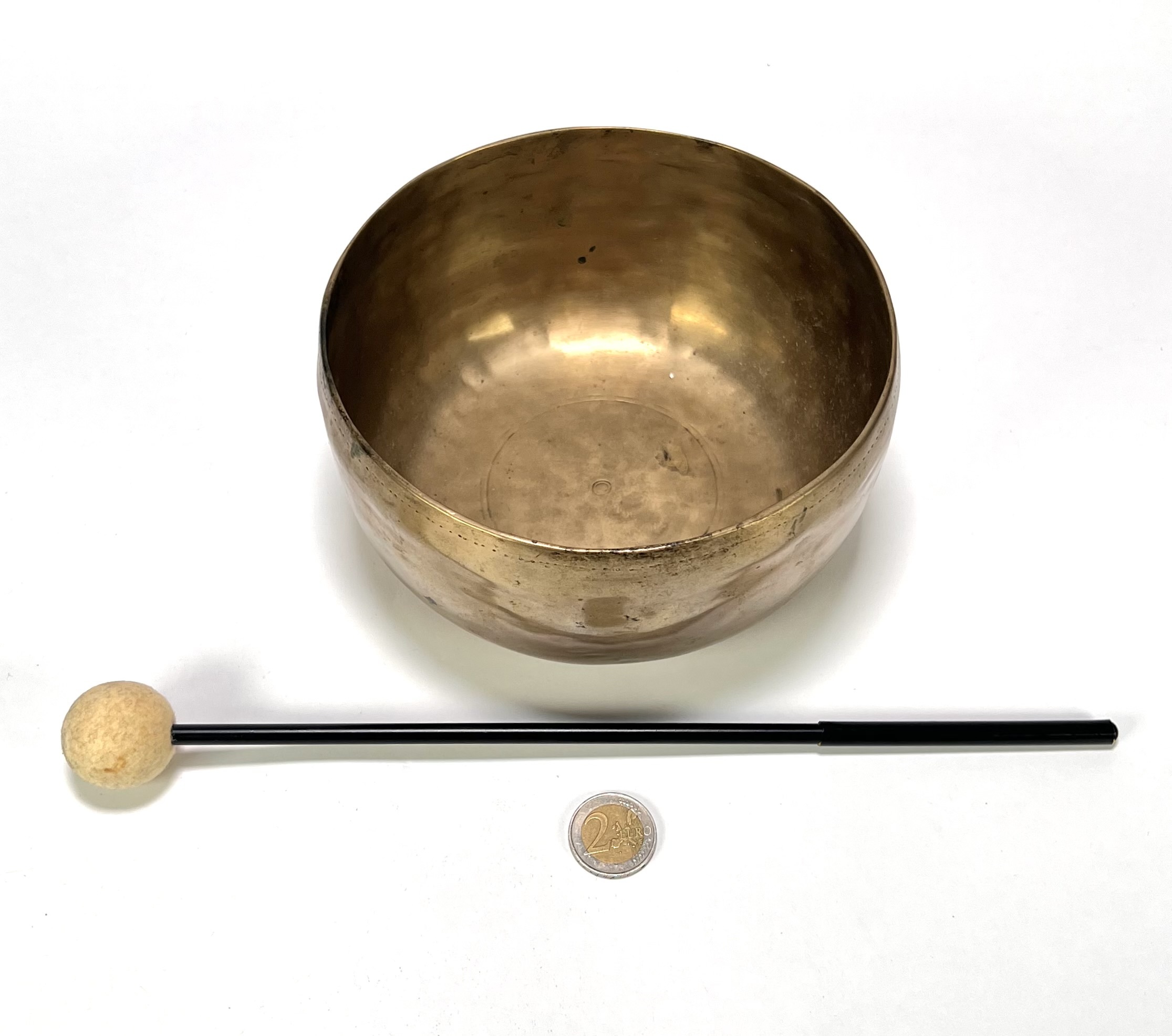 Messing klankschaal met slagstok, Tibet, tweede helft 20e eeuw