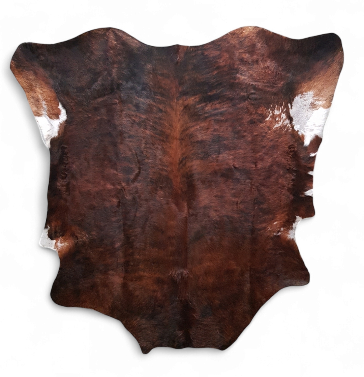 Runderhuid in natuurlijke stijl, vervaardigd uit gelooid rundleer, met een patroon in donkerbruin en wit. Het leer is soepel afgewerkt voor toepassing als vloerkleed of wanddecoratie. De huid dateert uit de eenentwintigste eeuw en heeft een herkomst uit Zuid-Amerika. Geïnteresseerd? Bezoek onze kijkdagen op 10, 11 en 12 april 11:00 tot 17:00 uur! |