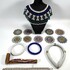 Kralen sieraden in traditioneel Zuid-Afrikaanse stijl, vervaardigd uit glazen kralen op textiele en houten dragers. Het lot omvat een rijk gedecoreerde kraag met geometrische motieven, negen ronde onderzetters met zonnestraalpatronen, diverse halskettingen en een houten pijp met kralenbeslag. De kleurstelling wordt gedomineerd door wit, blauw en zwart met rode accenten. Datering 20e eeuw. Zeker zijn van deelname? Plaats vanaf 3 april een schriftelijk bod online! |