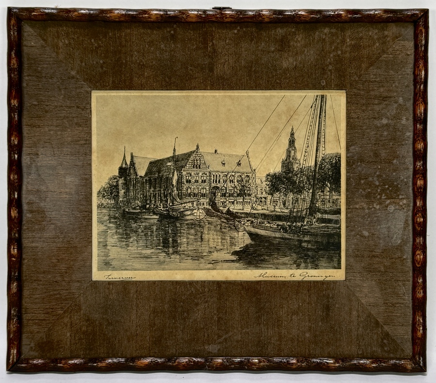Litho door Jan Zwerver (1907–1973) toont een stadsgezicht van Groningen in realistische stijl, uitgevoerd als lithografie op papier. De compositie focust op het Museum te Groningen met historische zeilschepen in de gracht op de voorgrond. De lithografie is linksonder gesigneerd en rechtsonder geannoteerd met de titel, daterend uit circa 1930 en een Nederlandse herkomst. Klaar om te bieden? Registreer je nu en doe mee aan de veiling! |