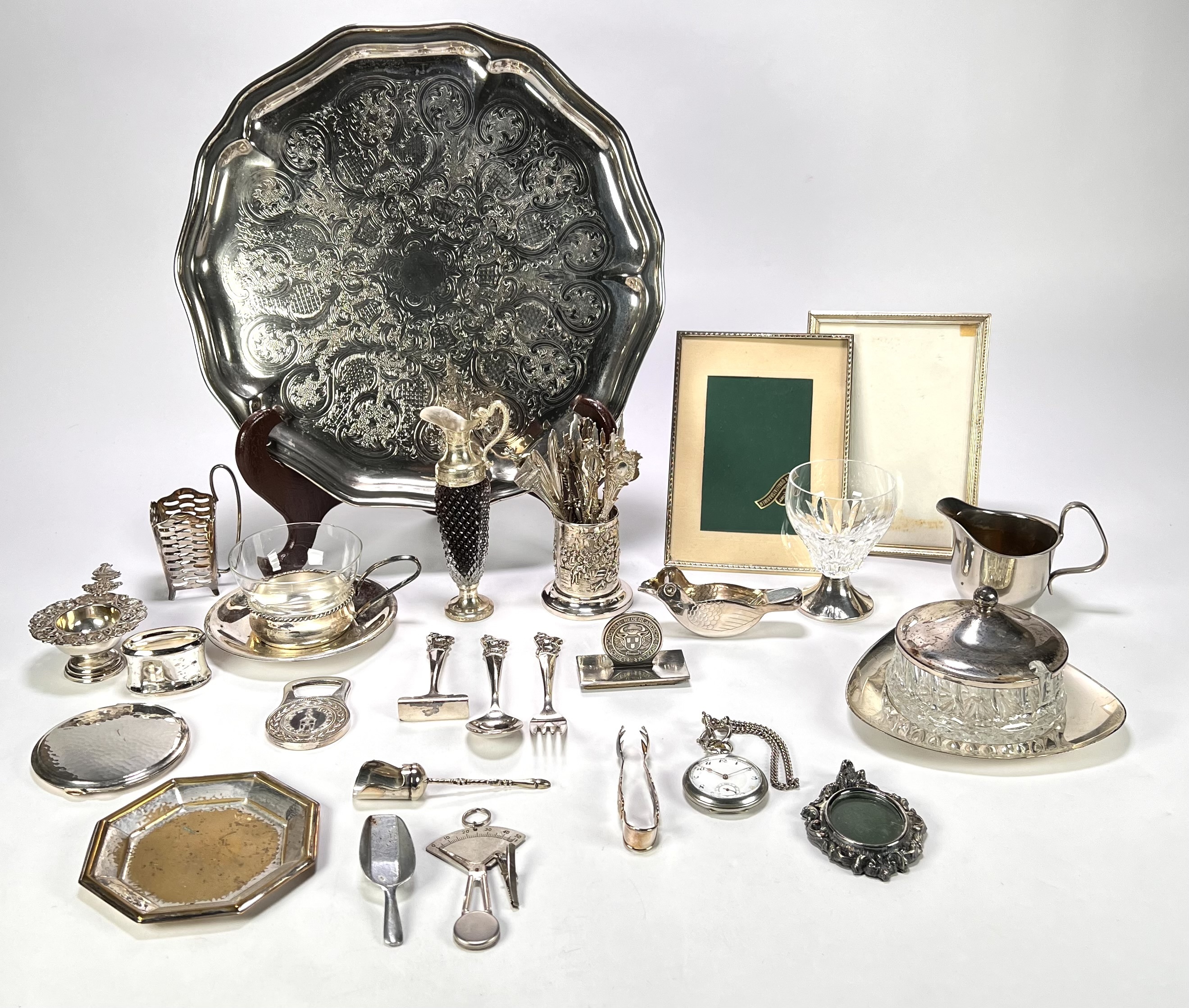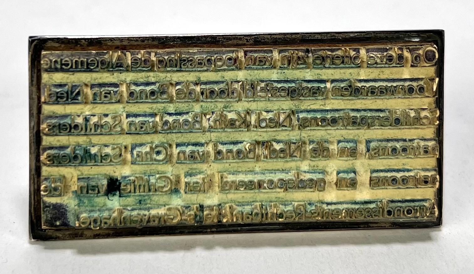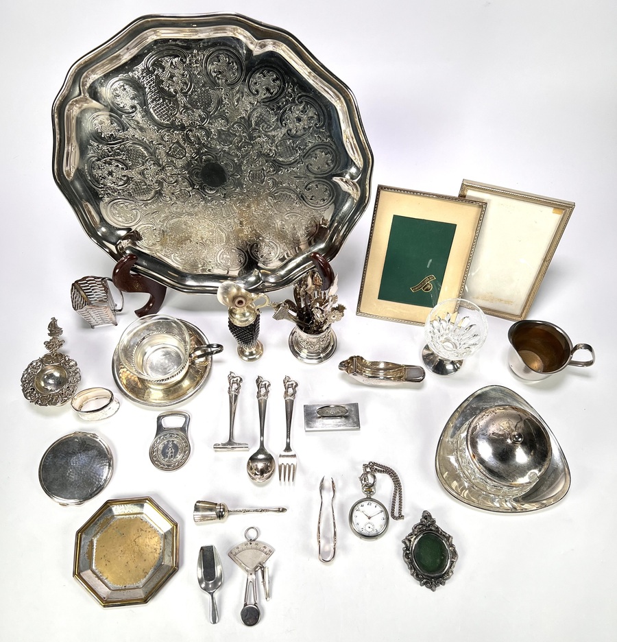 Lot pleet met onder meer een stempel met reliëf tekst ‘Bond van Nederlandsche Schilderspatroons’, een opengewerkt theezeefje, een glas met zilveren voet, kinderbestek met dierfiguren, fotolijstjes, een zakhorloge, een dienblad, tafelgerei en poederdoos. Het lot dateert uit de 20e eeuw en heeft een West-Europese herkomst. Wil je direct deelnemen? Plaats alvast een schriftelijk bod via onze website! |