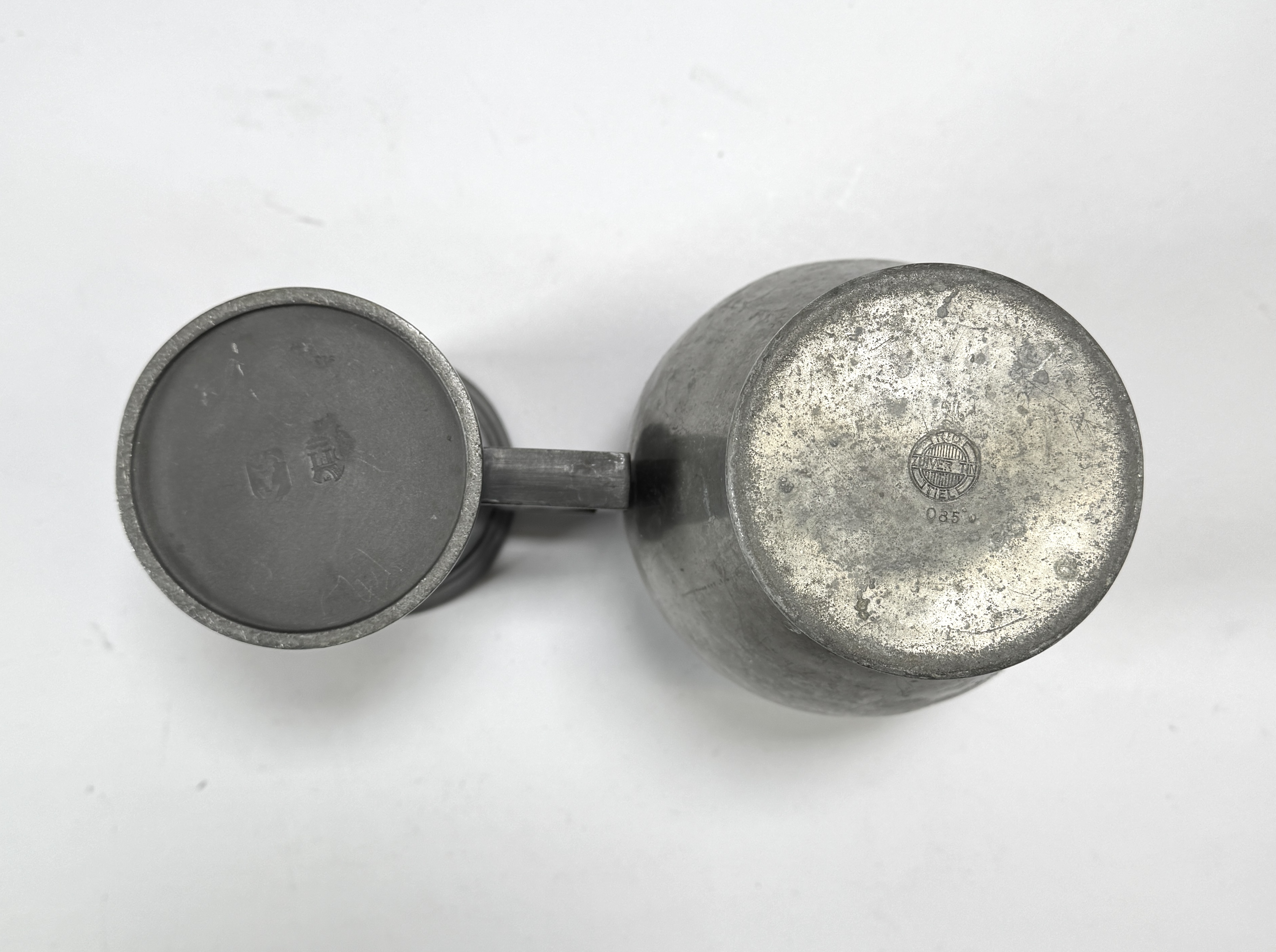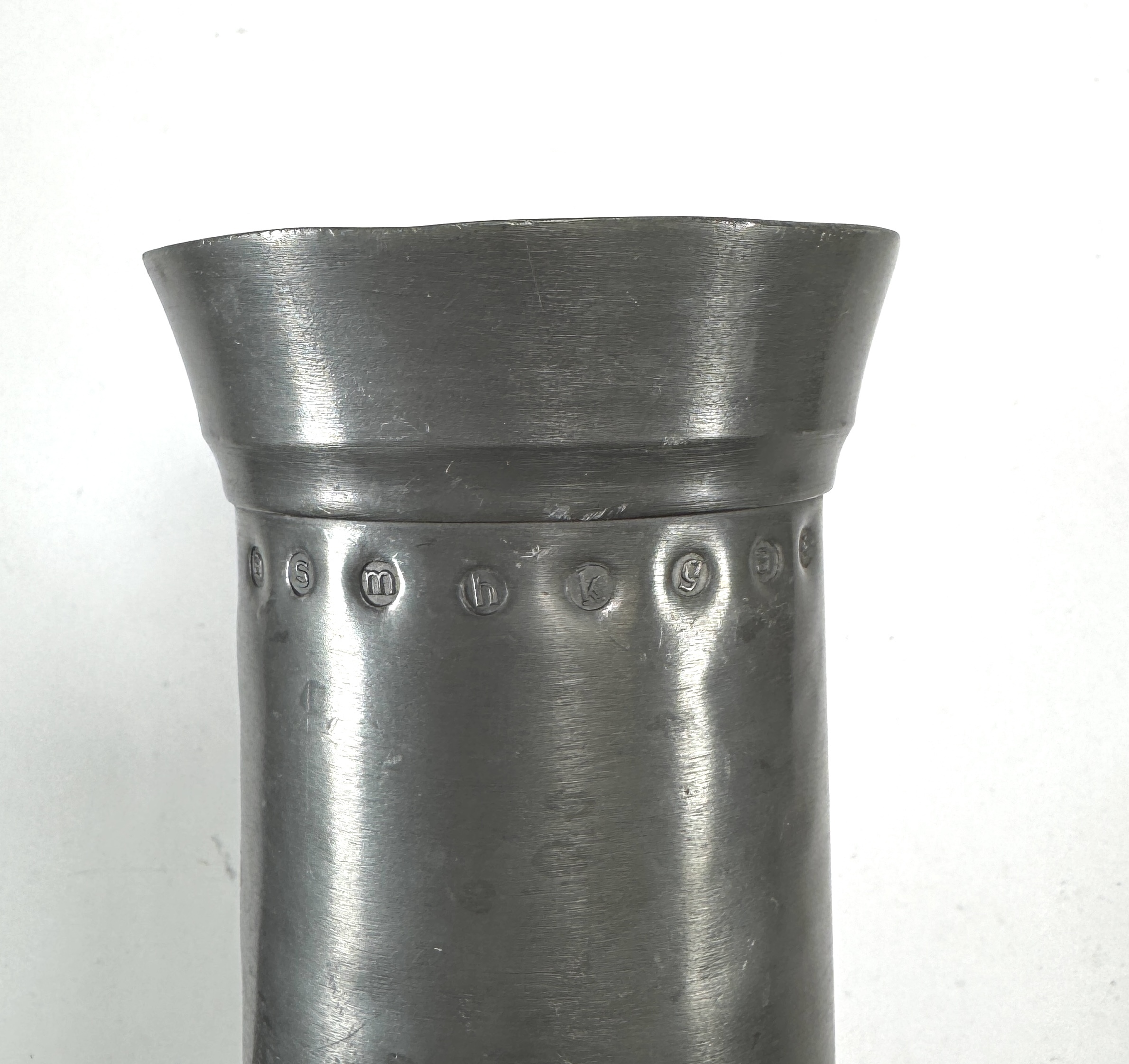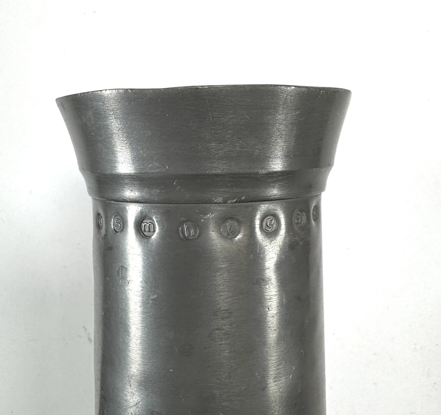 Selectie koperen en tinnen objecten bestaande uit een roodkoperen ketel, een doofpot met messing deksel, een Art Deco vaas van Rio Tiel en een tinnen maatkan. De vaas uit de Art Deco periode toont een karakteristiek getrapt profiel. De overige stukken zijn traditionele gebruiksvoorwerpen uit de 19e en vroege 20e eeuw, vervaardigd via drijf- en gietwerk. De maatkan draagt diverse ijkmerken. Nederlandse herkomst. Zeker zijn van deelname? Plaats vanaf 3 april een schriftelijk bod online! |