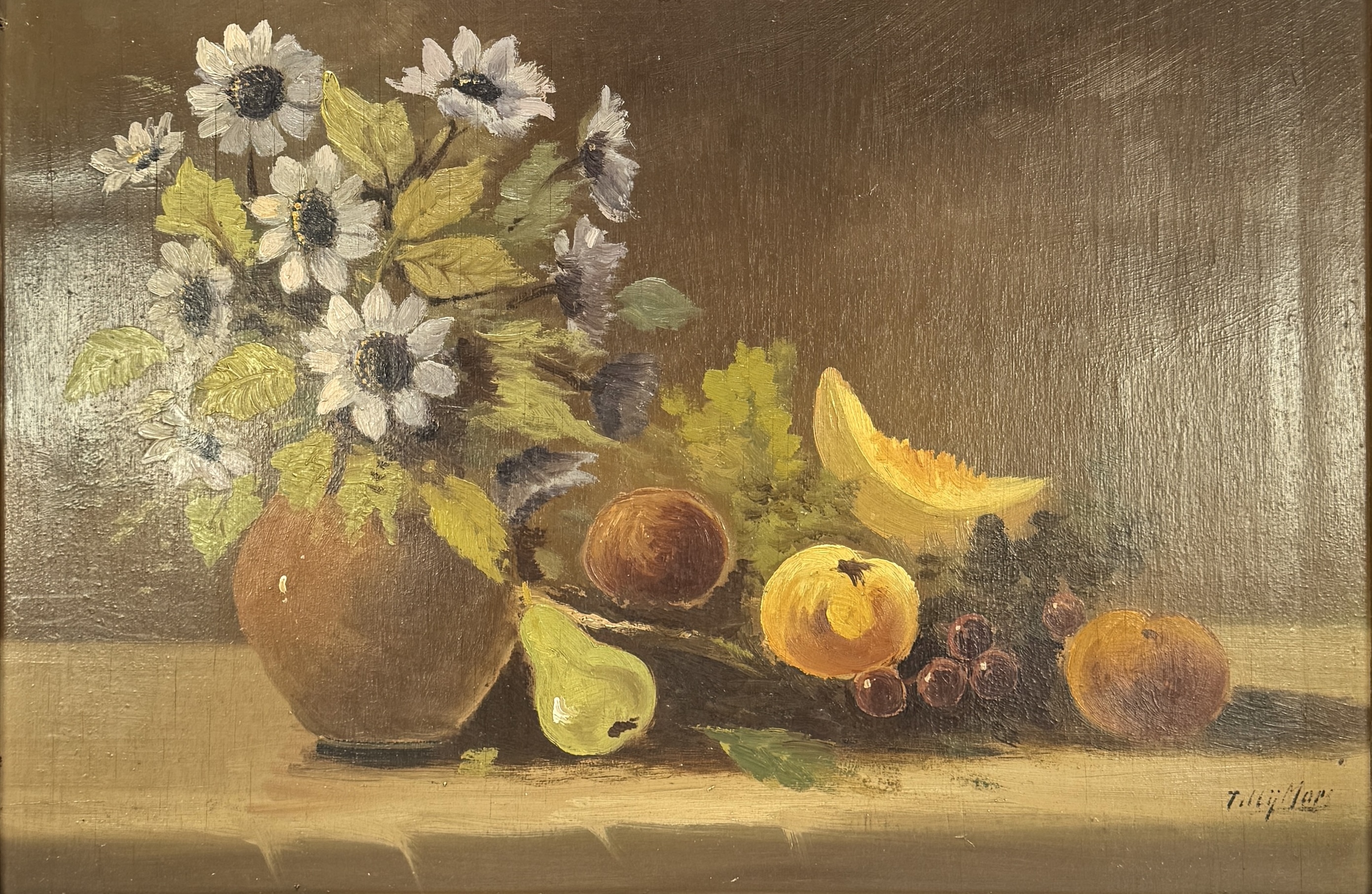 Olieverfschilderij, Tilly Moes - fruit stilleven, midden 20e eeuw