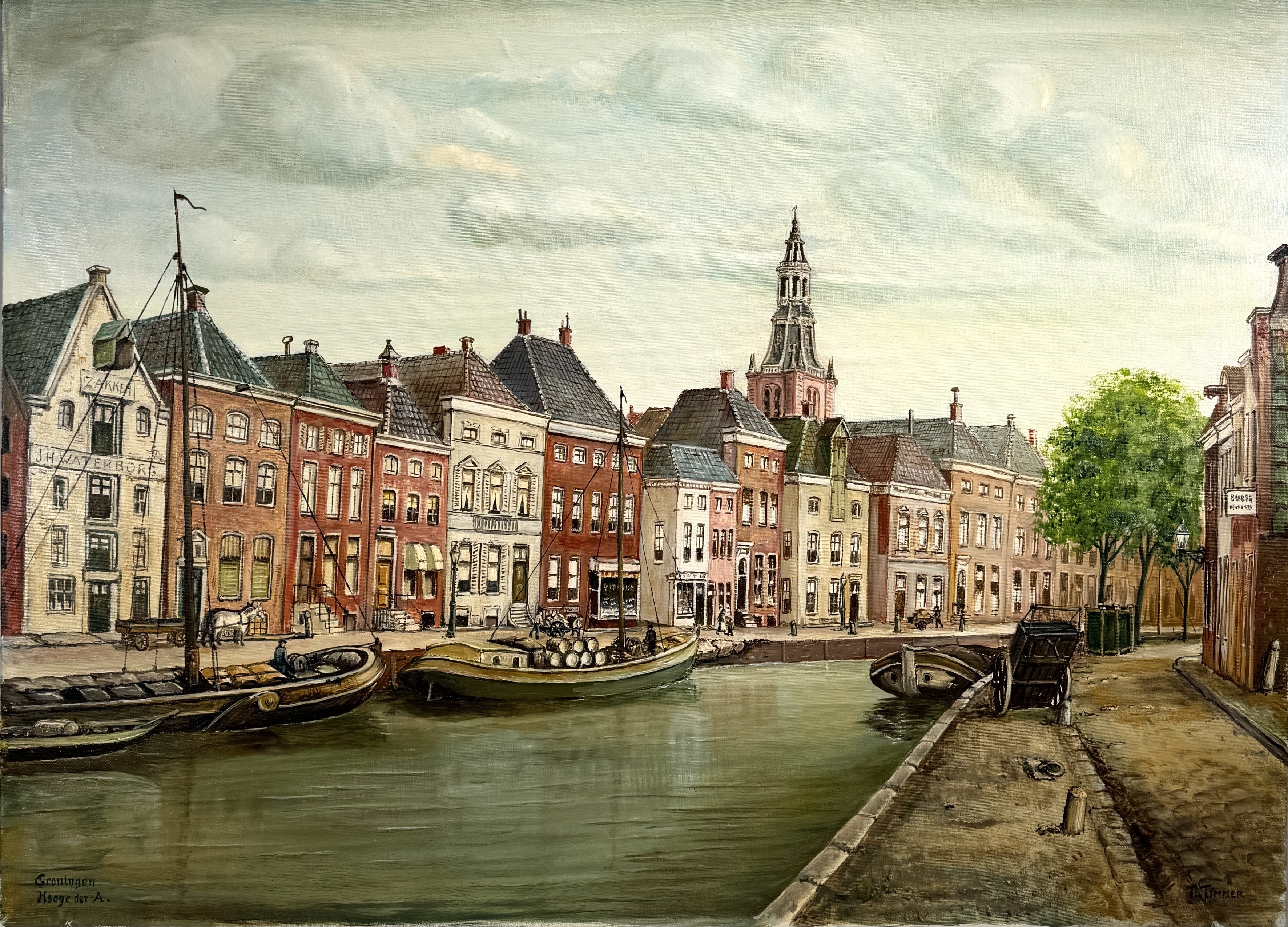 Olieverfschilderij, T. Timmer - "Groningen Hooge der A", midden 20e eeuw