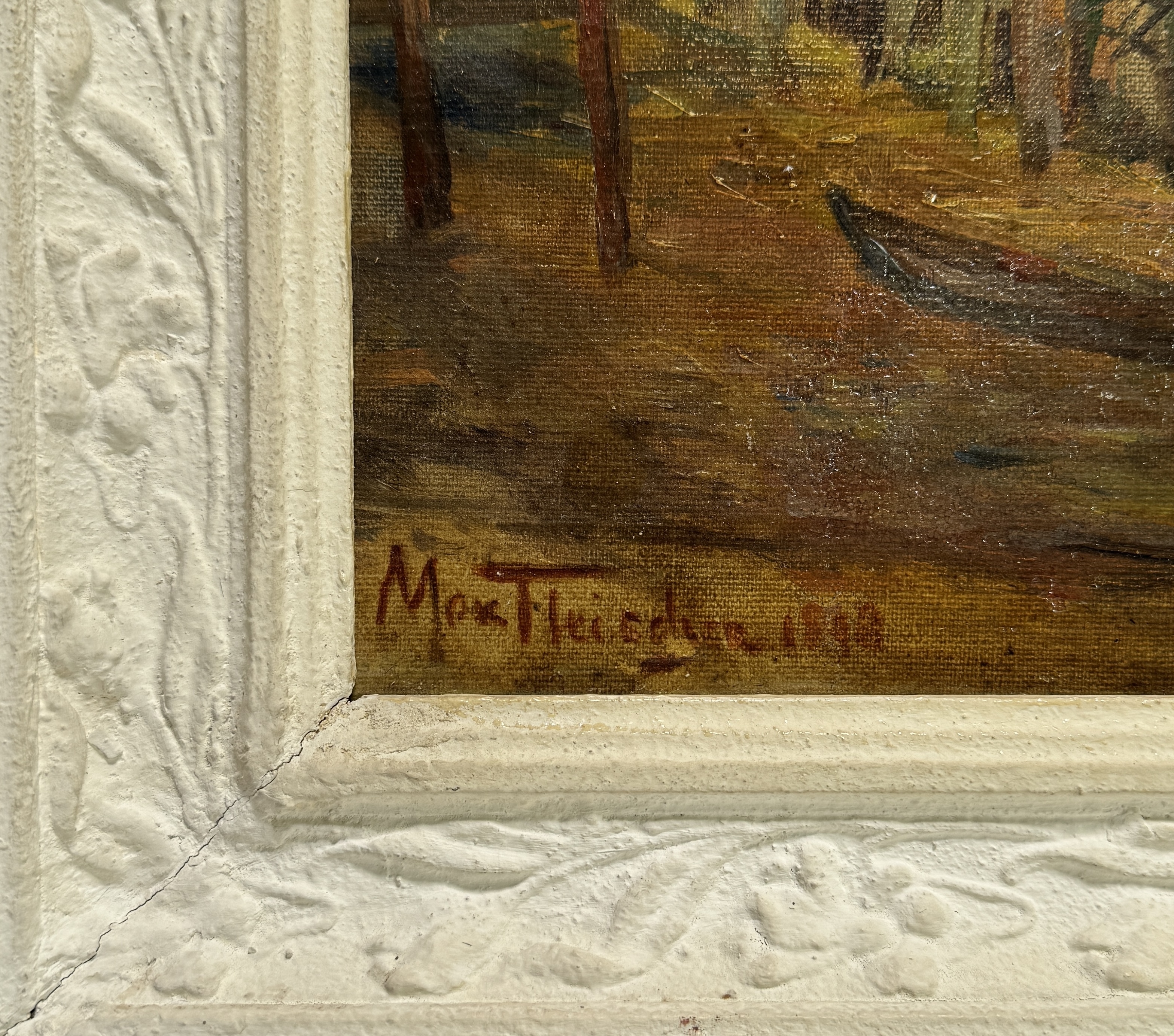 Olieverfschilderij, Max Fleischer - boslandschap met beek, Duitsland, 1898