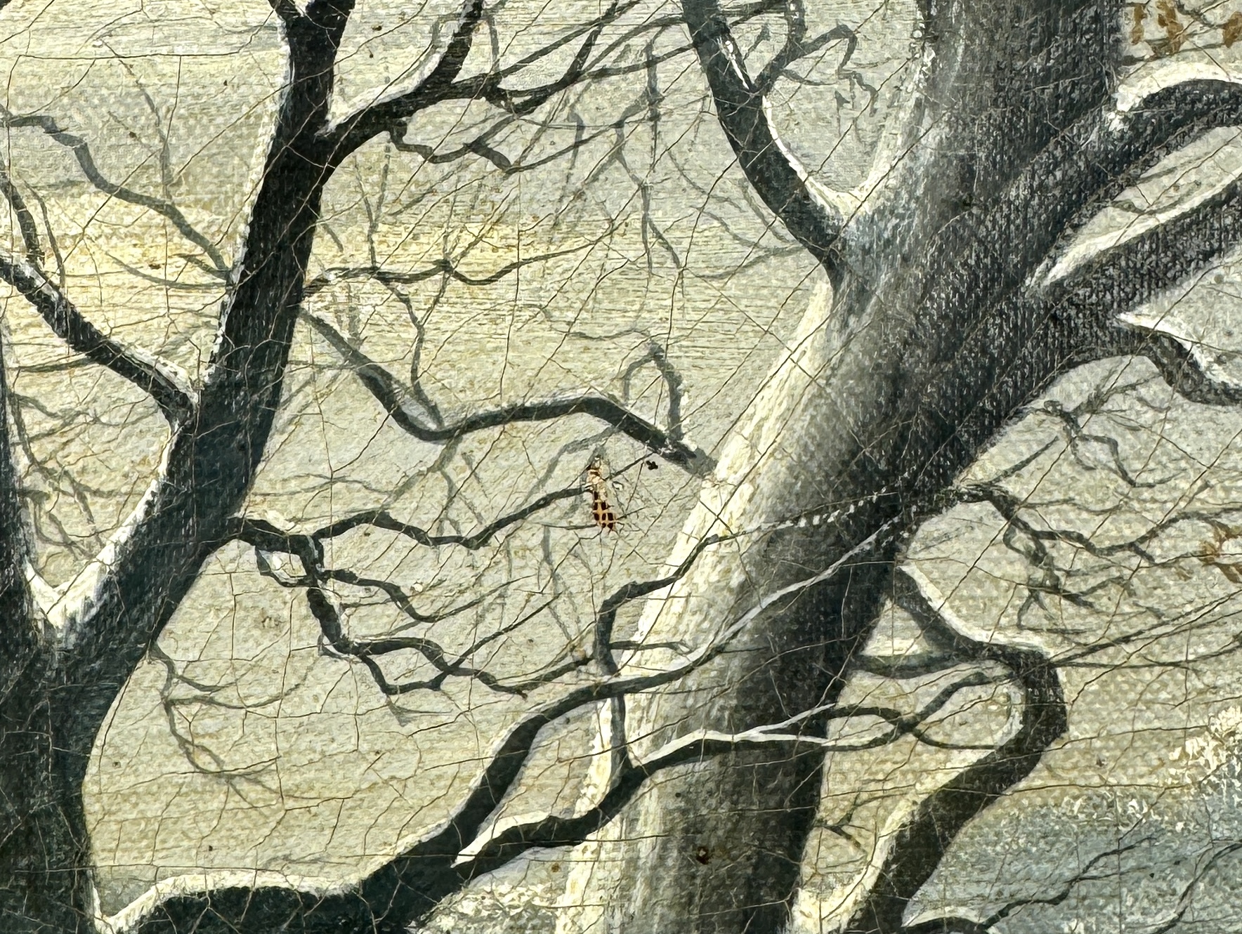 Schilderij door A. Gullberg toont een winterlandschap bij maanlicht in romantisch-realistische stijl, uitgevoerd in olieverf op doek. Op de voorgrond staan monumentale bomen en een bevroren waterloop, in het midden zijn twee herten weergegeven. Rechts bevindt zich een boerderij met rieten dak. Linksonder gesigneerd en gedateerd 1929, Noord-Europese herkomst. Wil je direct deelnemen? Plaats vanaf 3 april alvast een schriftelijk bod via onze website! |
