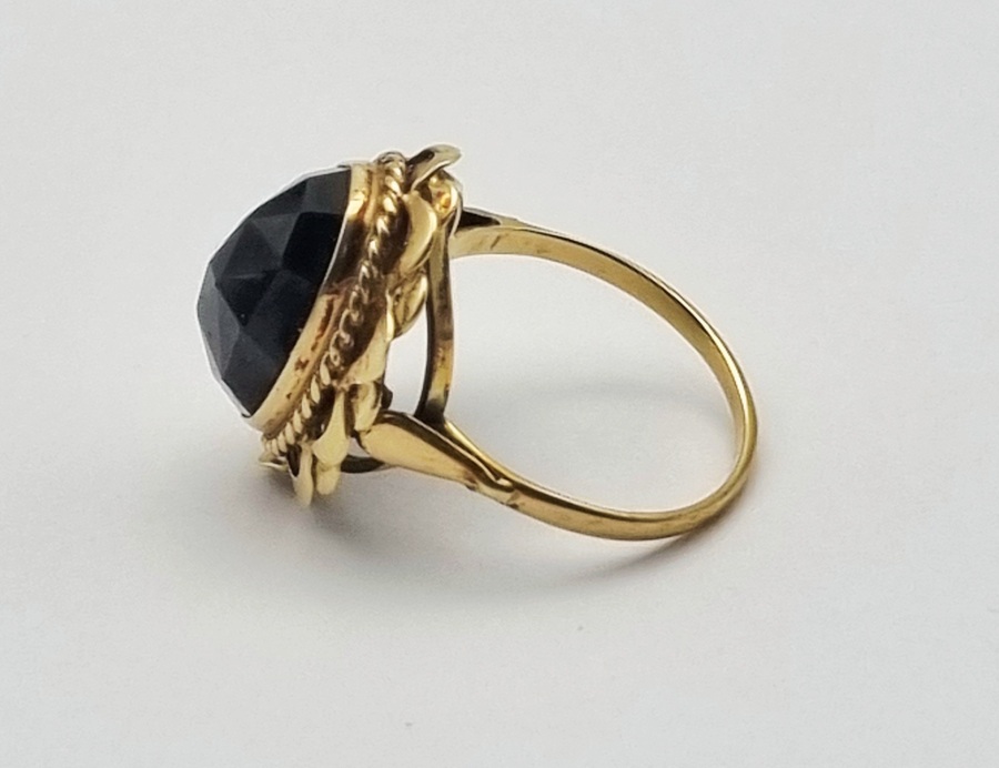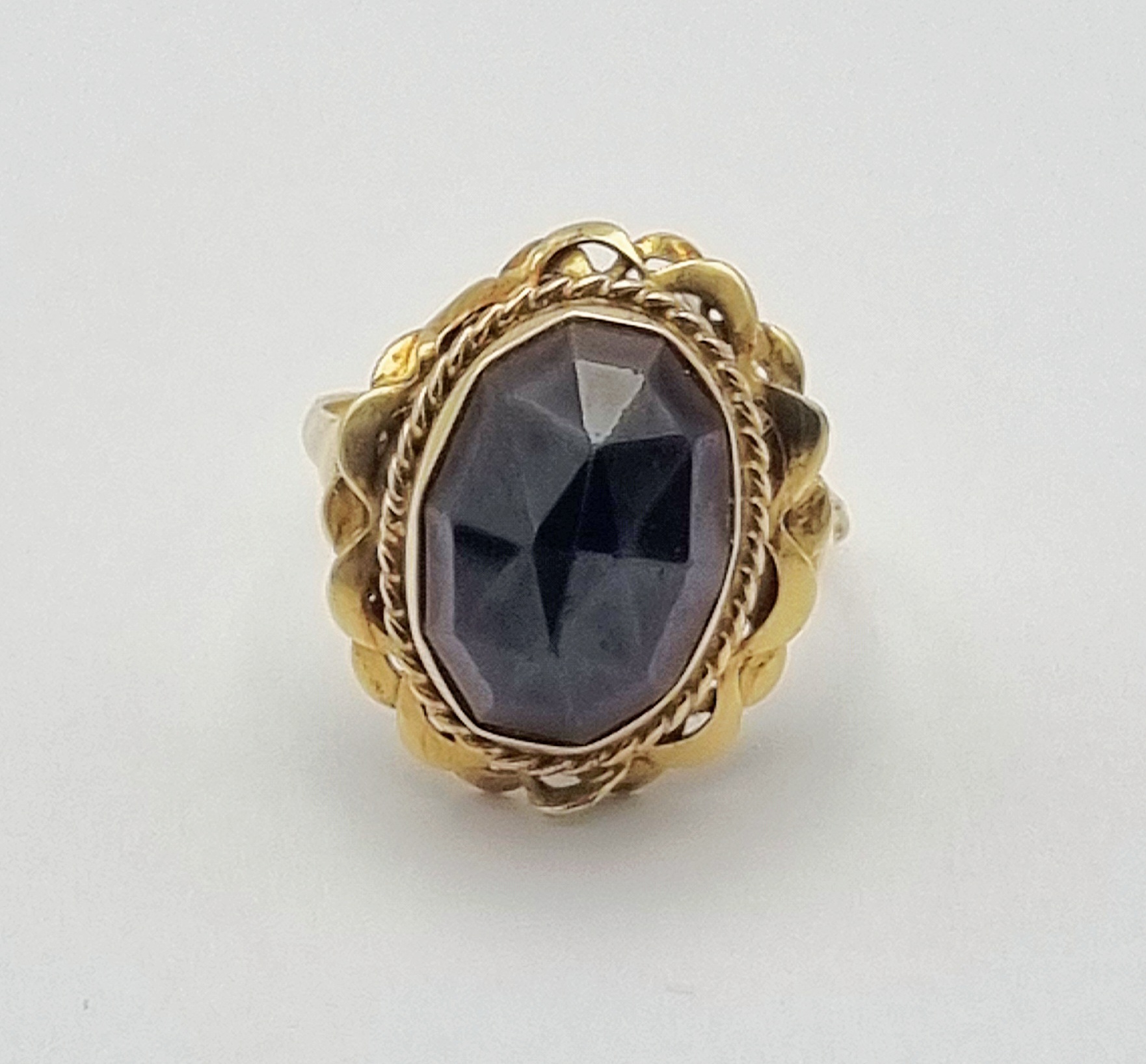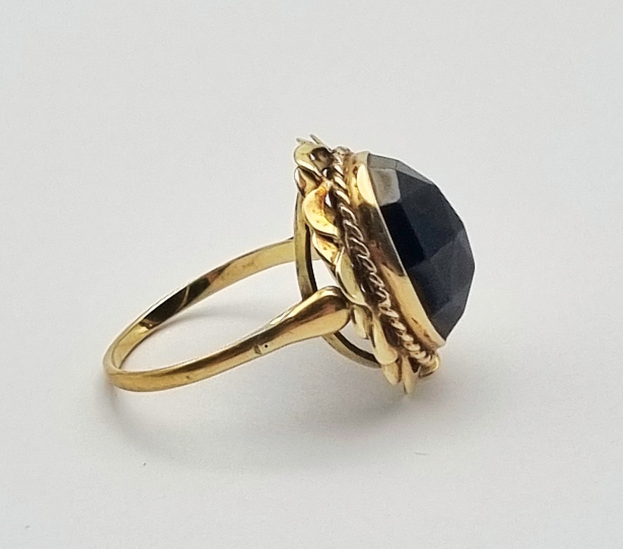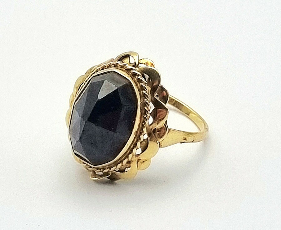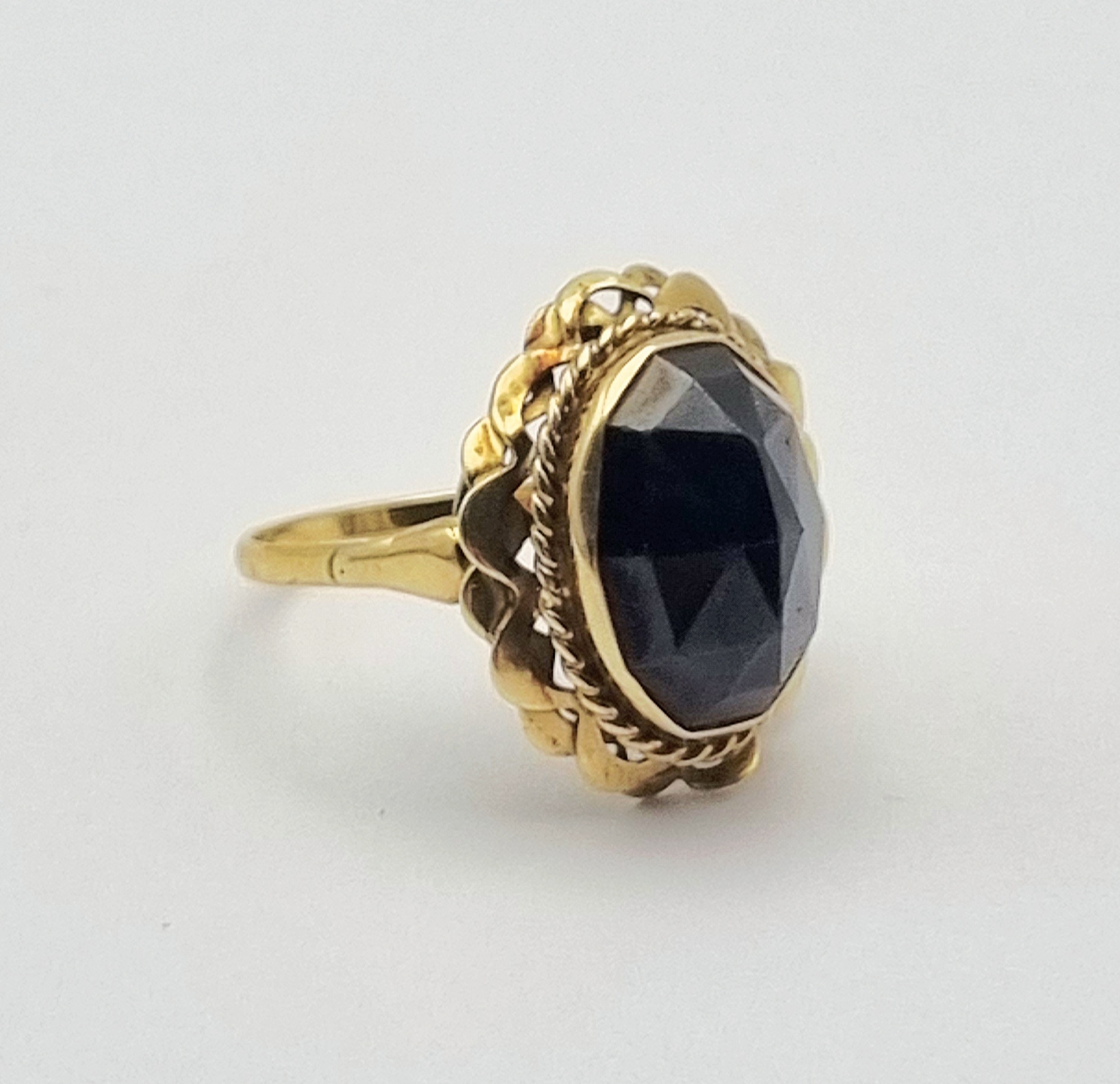 Gouden 14 karaats ring met granaat, 20e eeuw