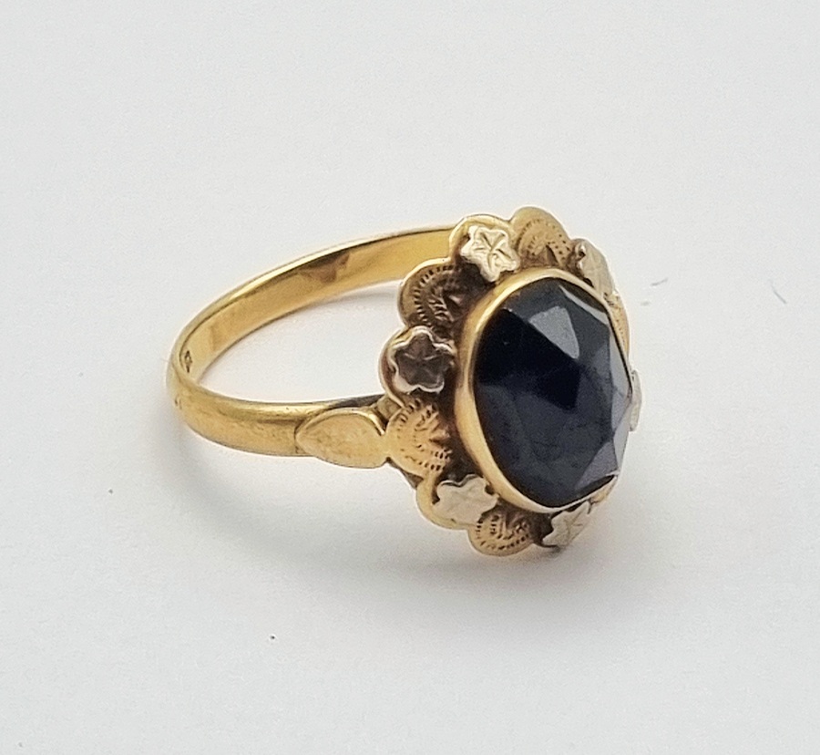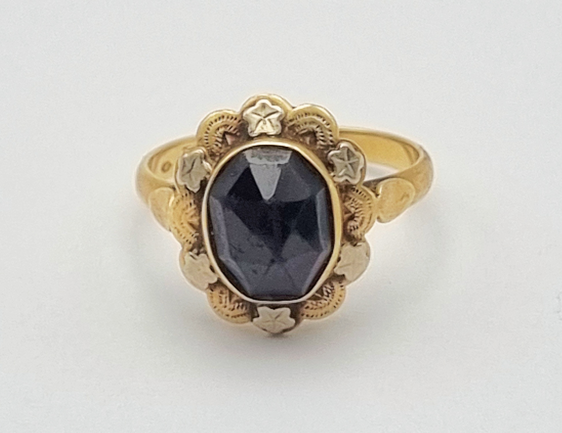 Gouden 14 karaats ring met granaat, ca. 1900