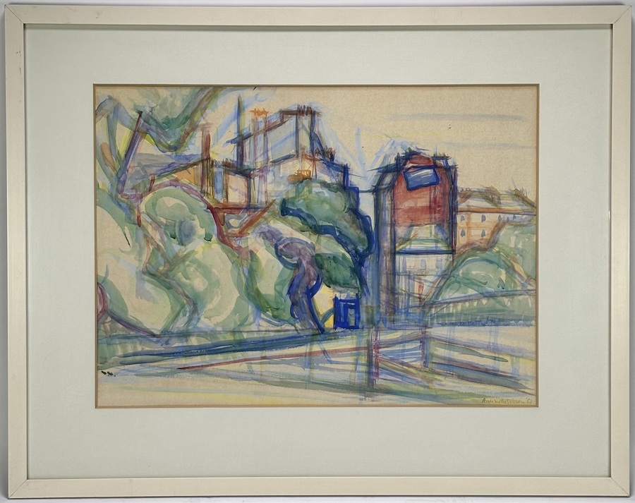 Aquarel, Antoinette Gispen - stadsgezicht, 1952