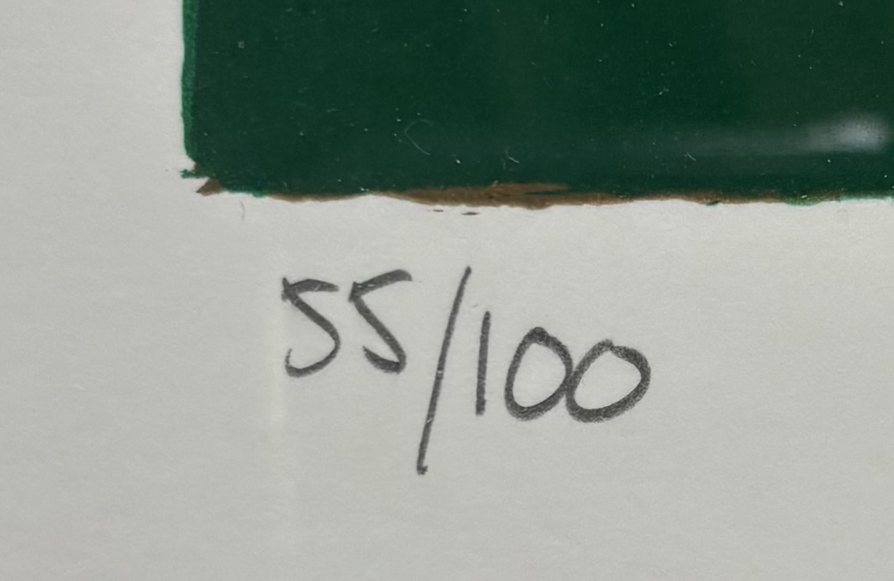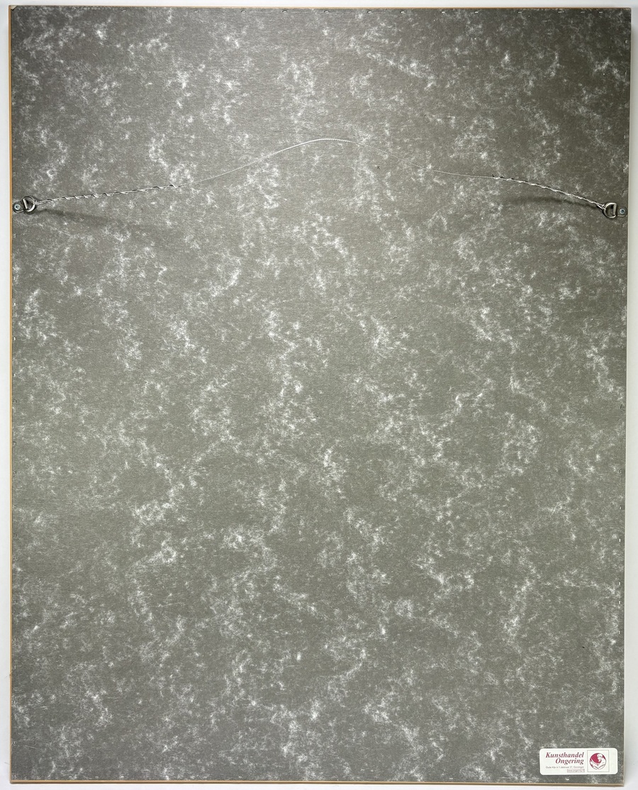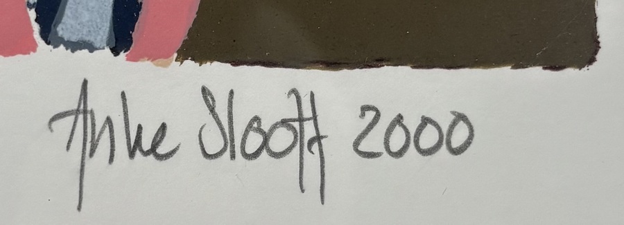 Zeefdruk door Anke Slooff (1957) toont het aangezicht van de Noorderhaven in Groningen met aangemeerde schepen, masten en netten in figuratief moderne stijl, uitgevoerd in zeefdruk op papier. De compositie bevat historische zeilschepen en karakteristieke bakstenen gevels tegen een heldere lucht met sterke lijnvoering en duidelijke vlakverdeling. Linksonder oplagenummer 55/100 en rechtsonder gesigneerd en gedateerd 2000. Geïnteresseerd? Bezoek onze kijkdagen op 10, 11 en 12 april van 11:00 tot 17:00 uur! |