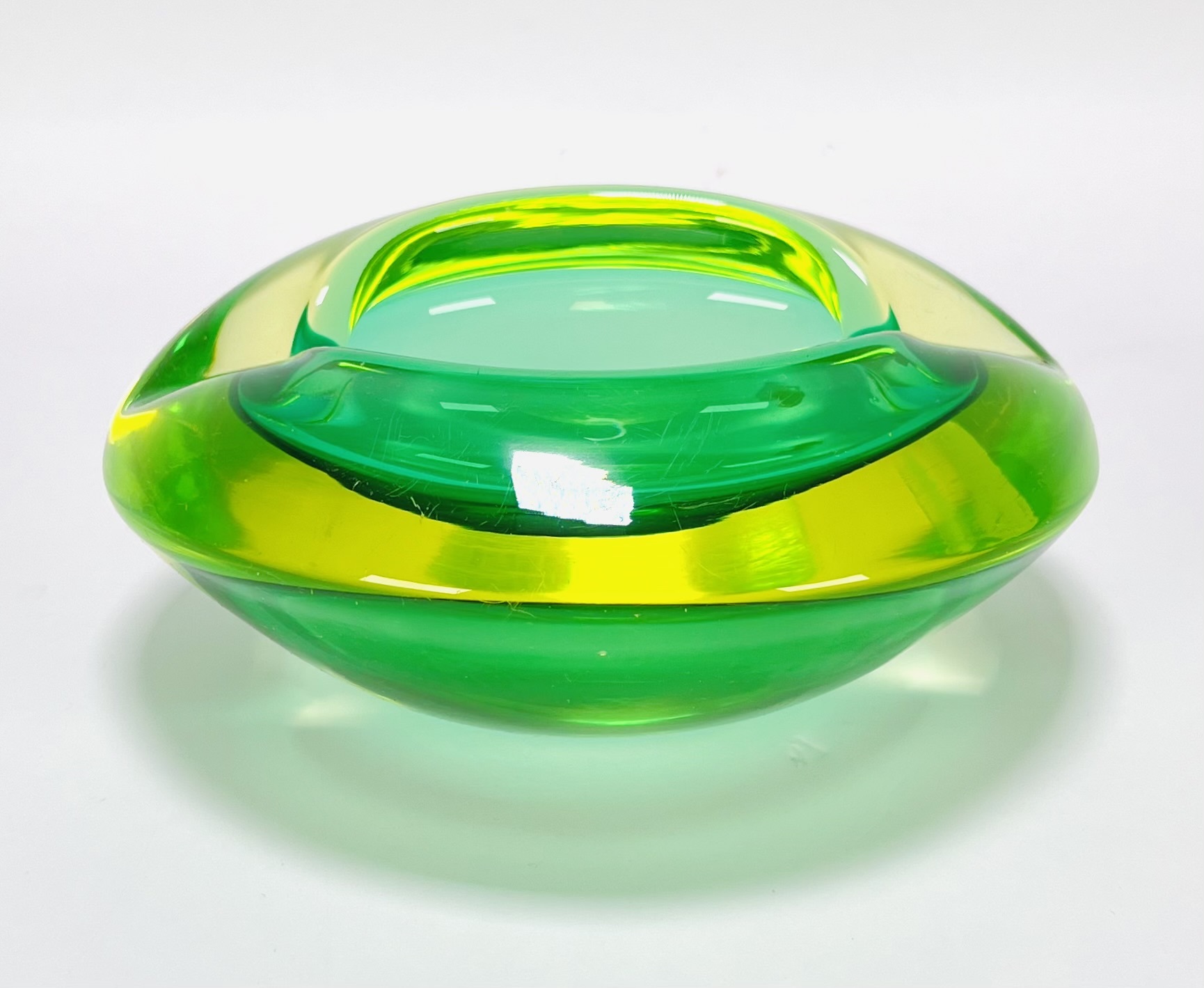 Uraniumglazen Murano schaal, midden 20e eeuw, Italië