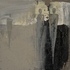 Schilderij, acrylverf op doek, toont een verstilde figuratieve compositie in abstract expressionistische stijl. Drie slanke silhouetachtige figuren verschijnen in transparante lagen, met rechts een verticale donkere baan en links een uitgeveegde grijszone met okerkleurige lichtvlek. Kom langs tijdens de kijkdagen (10 t/m 12 april) en ontdek dit schilderij zelf! |