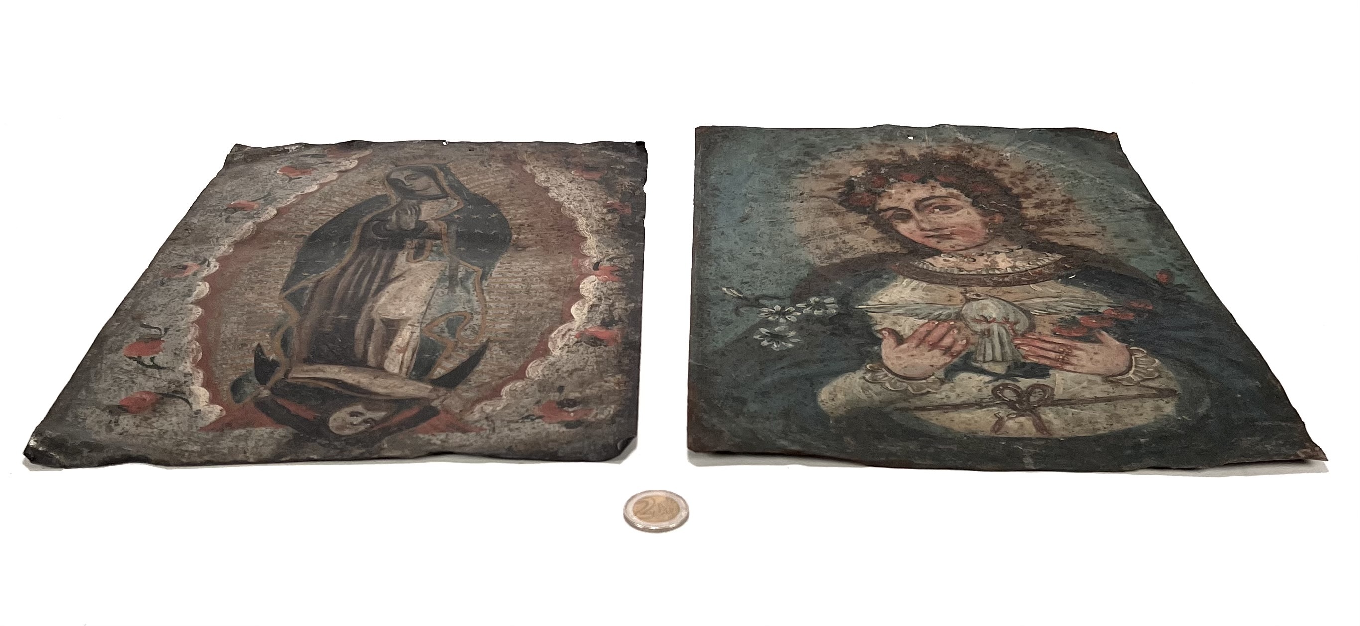 Religieuze retablo's Maria - olieverfschilderij op tin, Mexico, circa 1880
