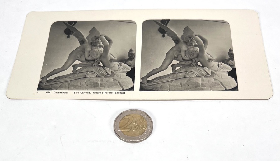 Stereokijker, eind 19e eeuw, vervaardigd uit hout met metalen onderdelen en voorzien van meerdere stereofoto’s op karton. De stereofoto's tonen Rome (18), Firenze (6) en Cadenabbia (1), waaronder museale sculpturen en monumentale architectuur. De houten kijker heeft een gebogen kap, geïntegreerde kijkvensters en handgreep. Wil je deze stereokijker in het echt bekijken? Kom naar de kijkdagen! |