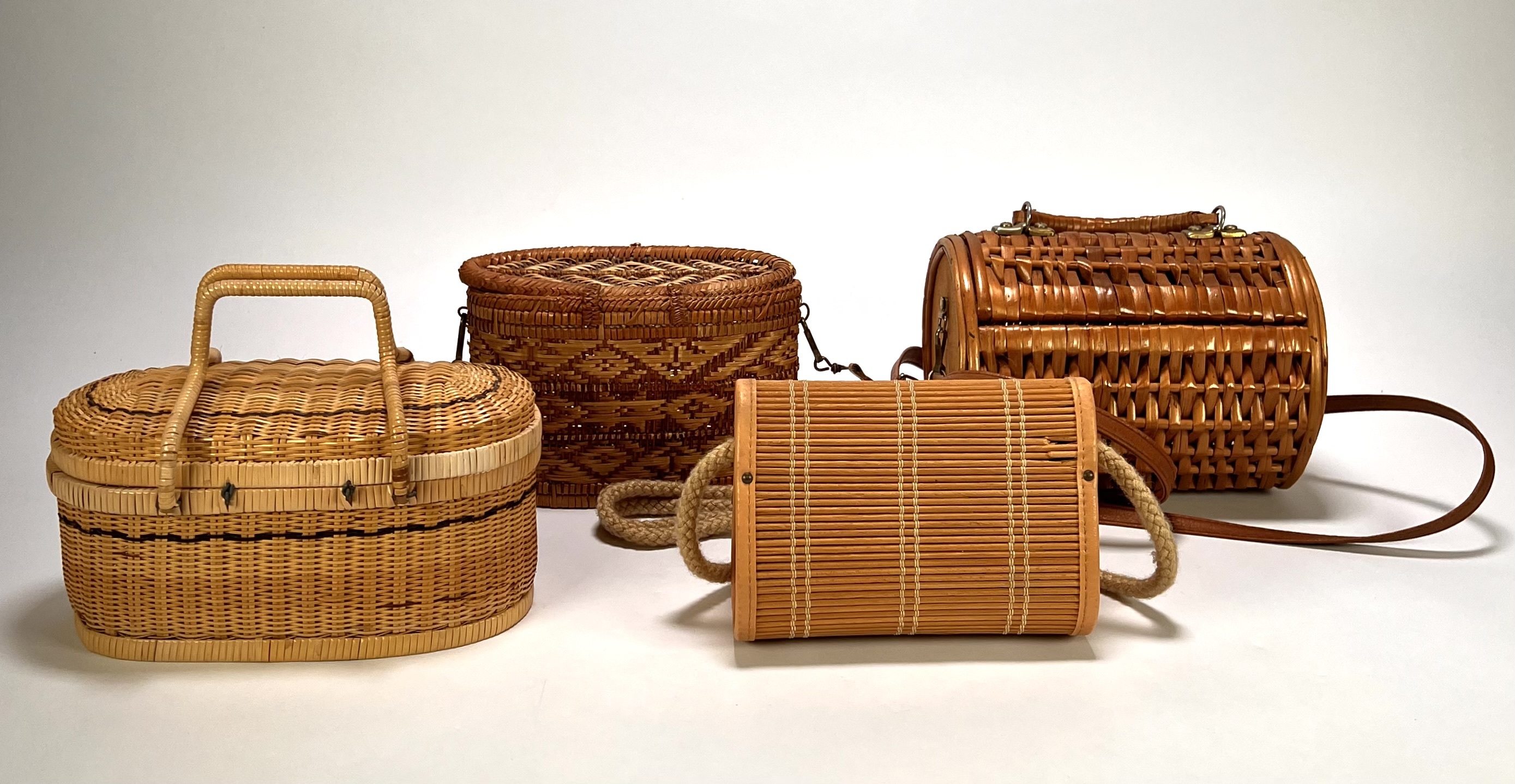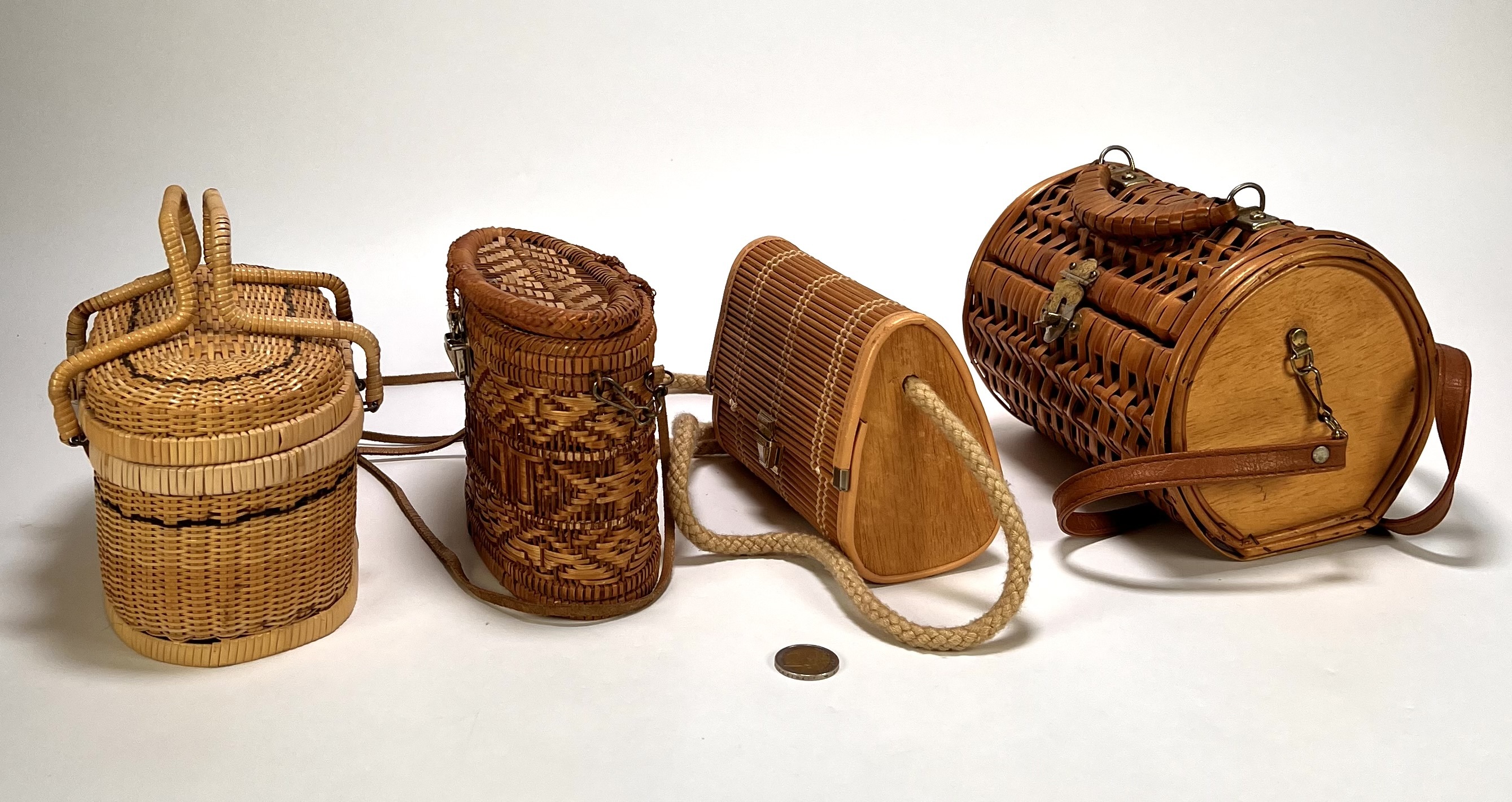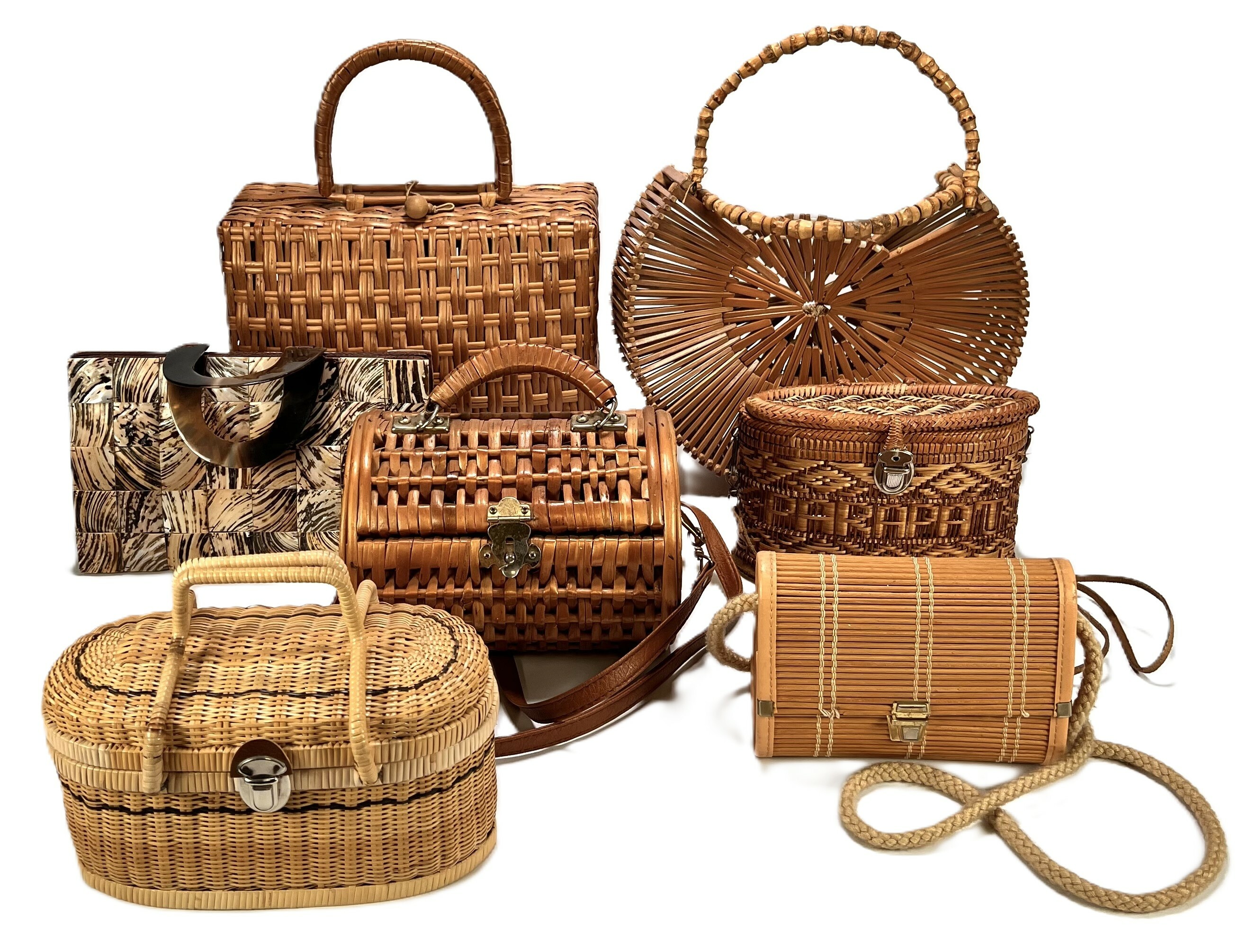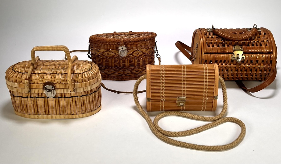 Collectie tassen - vintage vlechtwerk, midden 20e eeuw