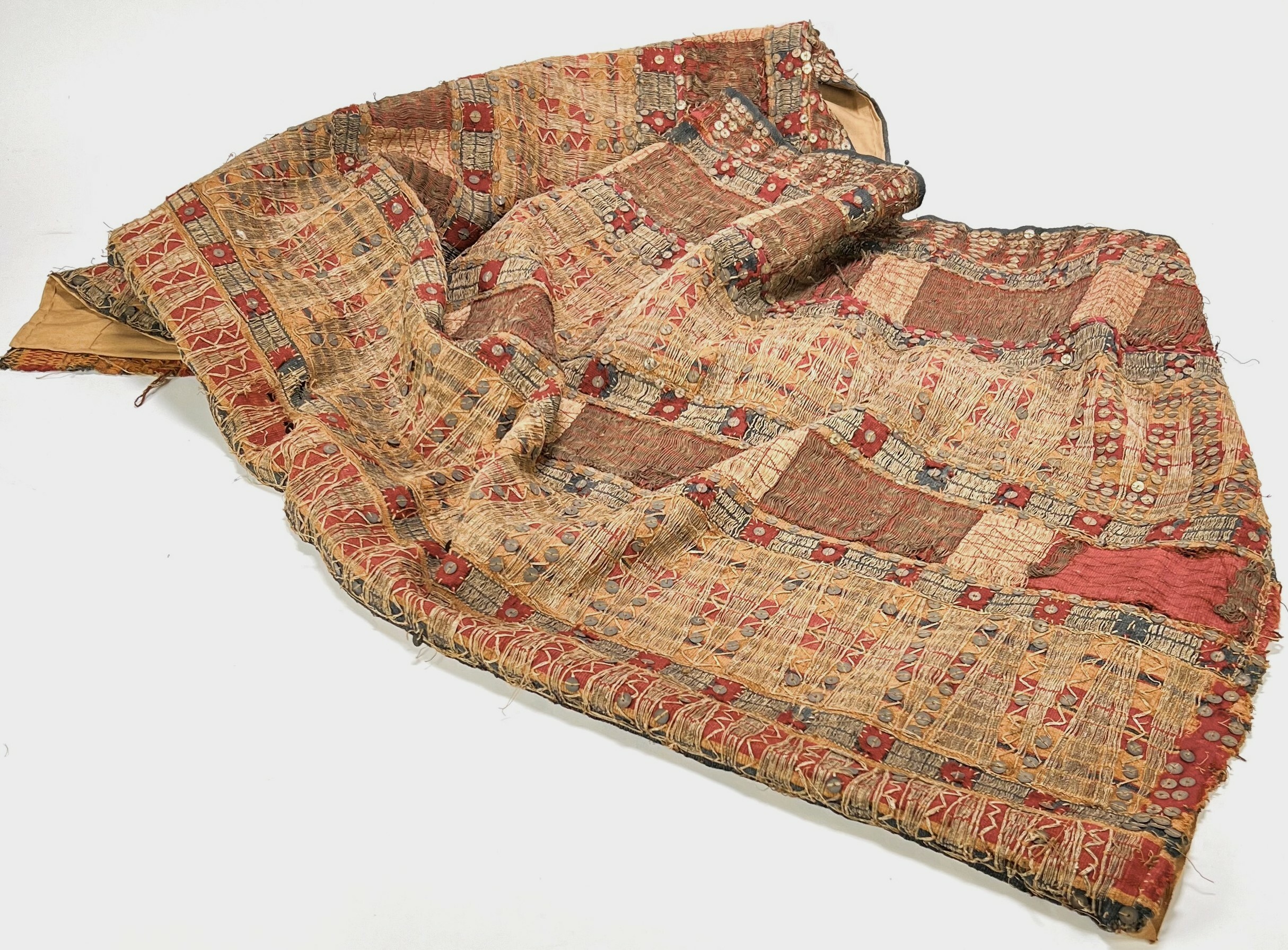 West-Afrikaans wandkleed uit de 20e-eeuw, vervaardigd uit handgeweven katoenen stroken met talrijke schijfapplicaties en geometrisch borduurwerk. De vlakken tonen ruitpatronen en vlechtmotieven in indigo en oker, typerend voor de ceremoniële prestigekunst binnen de West-Afrikaanse cultuur. Wil je direct deelnemen? Plaats vanaf 3 april alvast een schriftelijk bod via onze website! |