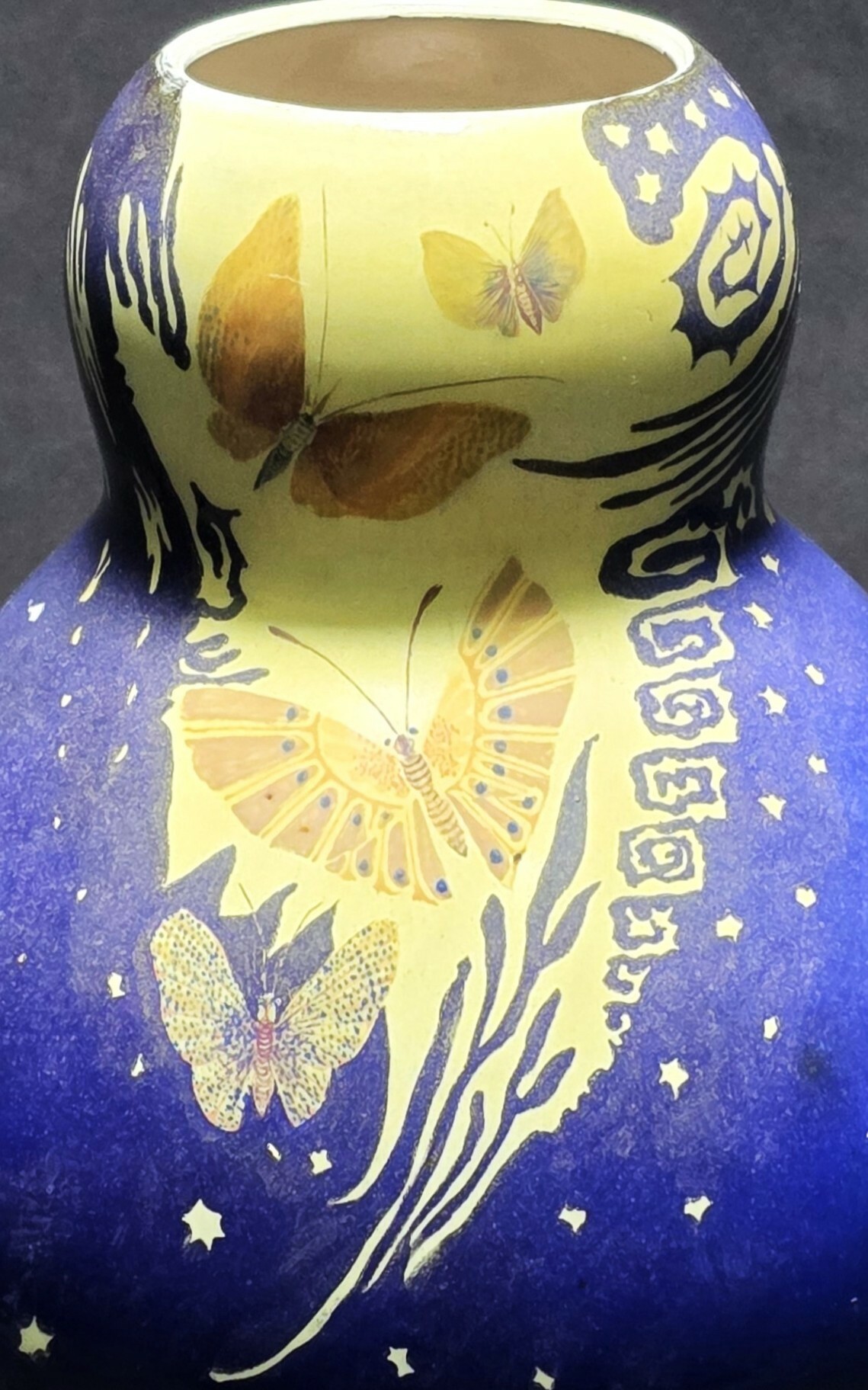 Jugendstil aardewerken vaas, ontwerp Chris Lanooy voor Aardewerkfabriek Haga - vlinder decor, ca. 1905