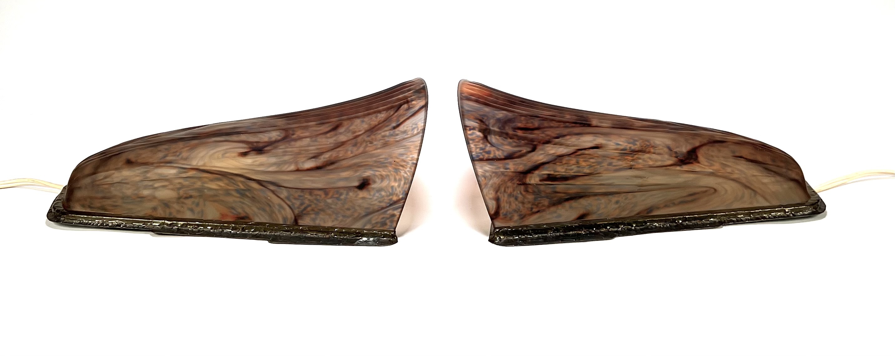 Art Deco wandlampen met gemarmerd glas - Frankrijk, ca. 1930