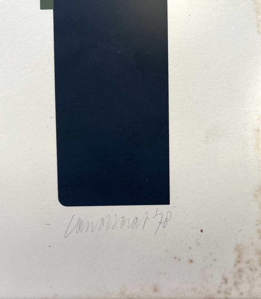 Zeefdruk door Hans Landsaat (1935) toont een abstracte compositie getiteld "Metalen Landschap IV" in postmodernistische stijl, uitgevoerd in zeefdruk op papier. De zeefdruk toont strakke geometrie met een kleurpalet van bordeauxrood, donkergroen en zwart. Gesigneerd, gedateerd 1978 en oplagenummer 54/150. Wil je direct deelnemen? Plaats vanaf 3 april alvast een schriftelijk bod via onze website! |