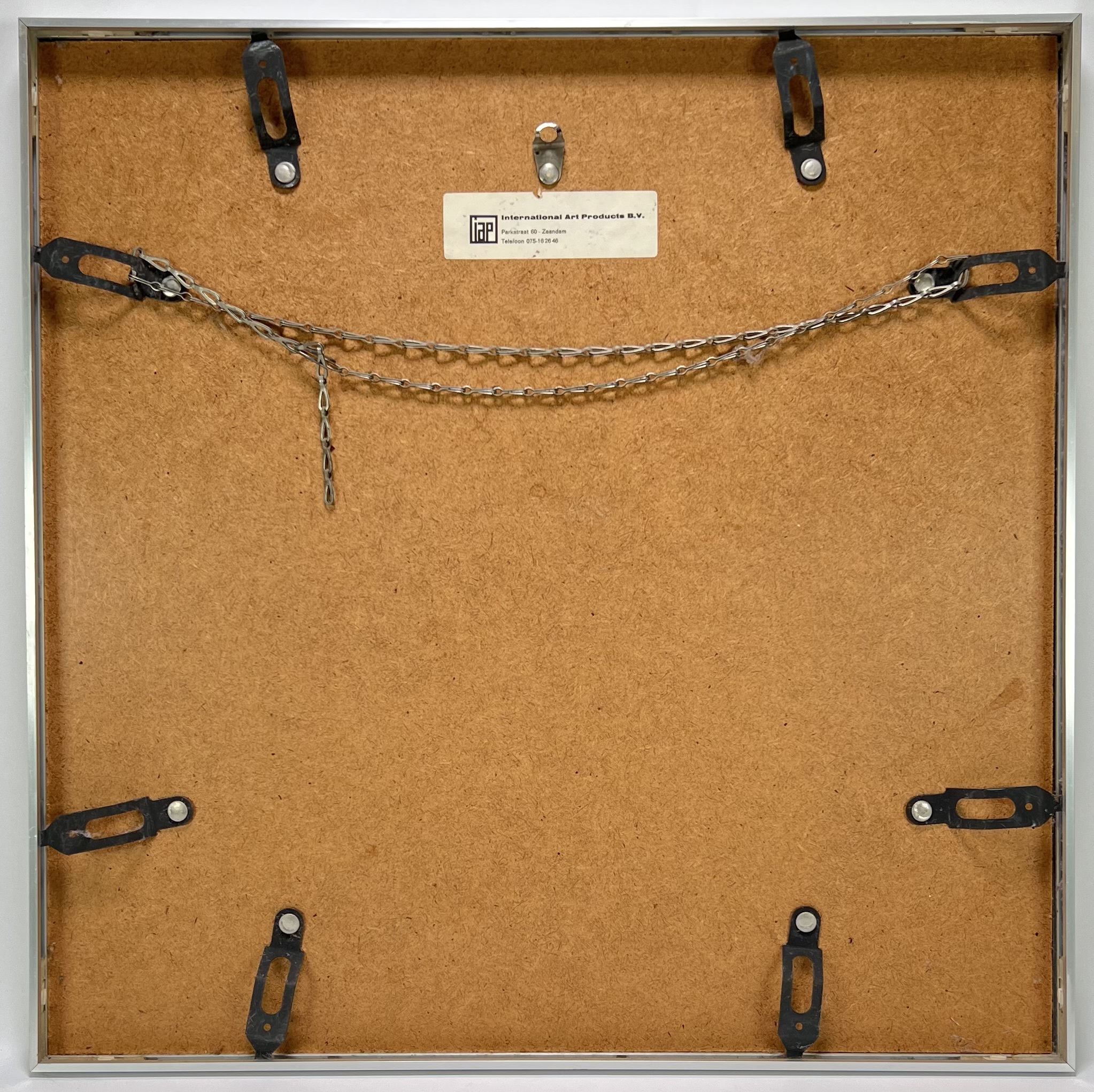 Zeefdruk door Hans Landsaat (1935) in modernistische stijl, uitgevoerd in zeefdruk op papier. Het werk is rechtsonder gesigneerd en gedateerd 1978. Midden onder getiteld "Metalen Landschap III" en linksonder genummerd 54/150. Het werk dateert uit circa 1978 en heeft een Nederlandse herkomst. Het bevindt zich in een zilverkleurige lijst achter glas. Kom langs tijdens de kijkdagen en ontdek deze zeefdruk zelf! |