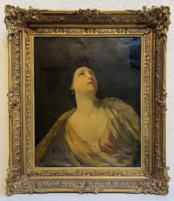 Schilderij, olieverf op doek. Halflang portret afgeleid van het bovenste deel van een schilderij van Guido Reni "Judith en Holofernes" (Galleria Spada-collectie, Rome). Italiaanse school 18e eeuw.
