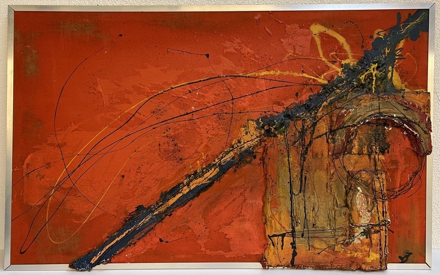 Abstract schilderij, olieverf met materie, verso gesigneerd en gedateerd S. Koren '67.