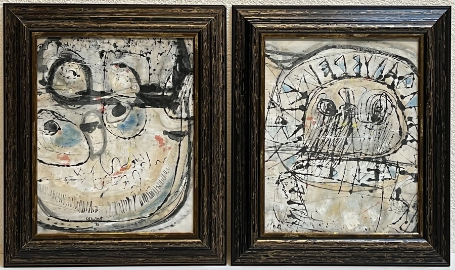 Pendanten, abstracte aquarellen, beide gesigneerd en gedateerd Constant '75.